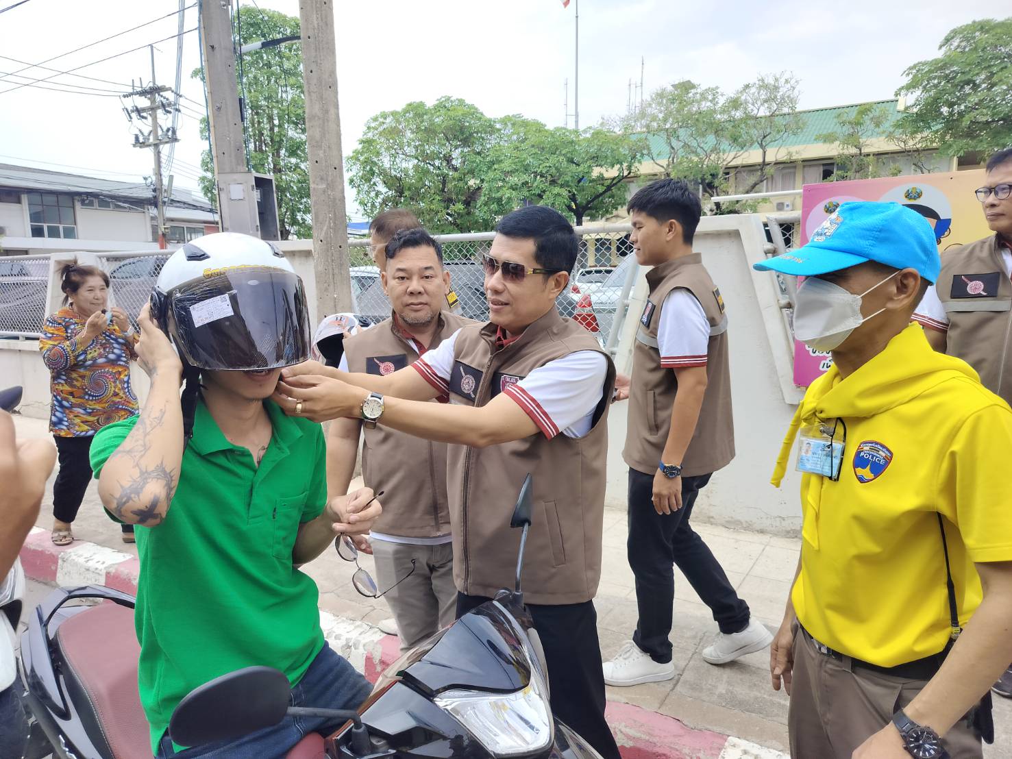 สภ.เมืองฉะเชิงเทรา จับมือ กต.ตร. รณรงค์ สวมหมวกกันน็อค
