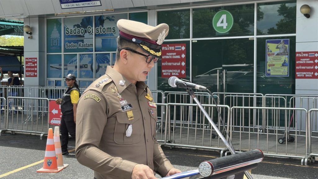 วันนี้ (10 เมษายน 2568) เวลา 13.00 น. ณ ด่านพรมแดนสะเดา จังหวัดสงขลา พล.ต.ต.ณัฐกร ประภายนต์ รองผู้บัญชาการสำนักงานตรวจคนเข้าเมือง (รอง ผบช.สตม.) เป็นประธานในพิธีปล่อยแถวระดมกำลังเจ้าหน้าที่เพื่อดำเนินมาตรการป้องกันและปราบปรามอาชญากรรม รวมถึงอำนวยความสะดวกด้านการจราจรและการเดินทางของประชาชนและนักท่องเที่ยวในช่วงเทศกาลสงกรานต์ 2568