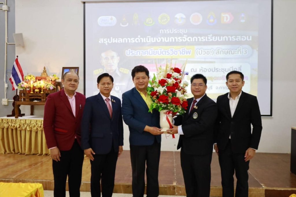 เมื่อวันที่ 10 เมษายน พ.ศ. 2568 สำนักงานเขตพื้นที่การศึกษามัธยมศึกษากาญจนบุรี โดยการนำของนายไพชยา พิมพ์สารี ผู้อำนวยการสำนักงานเขตพื้นที่ฯ พร้อมด้วยคณะผู้บริหารและคณะครูจากโรงเรียนในสังกัด ได้แก่ โรงเรียนอุดมสิทธิศึกษา โรงเรียนประชามงคล โรงเรียนศรีสวัสดิ์พิทยาคม โรงเรียนทองผาภูมิวิทยา โรงเรียนร่มเกล้า กาญจนบุรี (ในโครงการพระราชดำริ) รวมถึงผู้แทนจากสถาบันเทคโนโลยีปทุมวัน และบุคลากรในสำนักงาน ร่วมแสดงความยินดีกับผู้ช่วยศาสตราจารย์จรายุทธ ประทีปวรกาญจน์ รองอธิการบดีมหาวิทยาลัยราชภัฏกาญจนบุรี