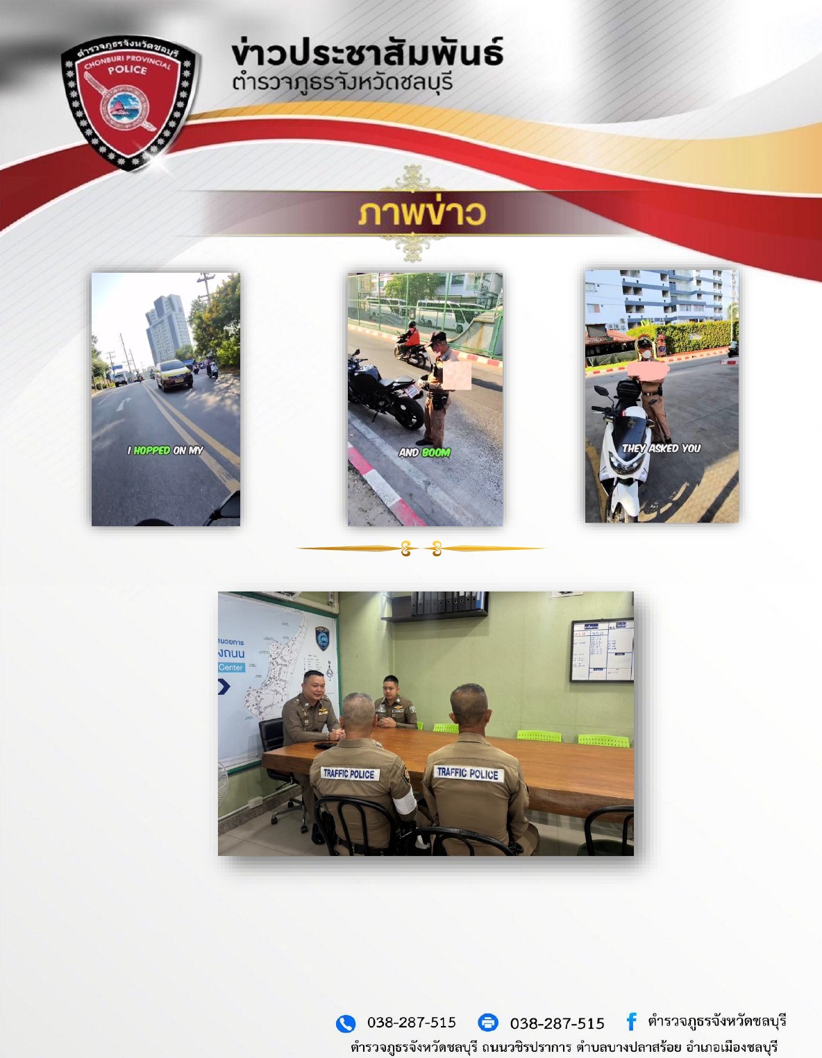 จากการตรวจสอบทราบว่า เป็นเจ้าหน้าที่ตำรวจจราจร ของสถานีตำรวจภูธรเมืองพัทยาจริง จึงได้เรียกเจ้าหน้าที่ทั้ง 2 นายมาพบ และได้สั่งการให้ ชี้แจงเกี่ยวกับเหตุที่เกิดขึ้น และได้ตรวจสอบข้อเท็จจริงที่ปรากฏในคลิปวิดีโอ จากนั้น และทางสถานีตำรวจภูธรเมืองพัทยา ได้ตั้งคณะกรรมการตรวจสอบข้อเท็จจริง และพิจารณาเหตุดังกล่าว ตามคำสั่งสถานีตำรวจภูธรเมืองพัทยา ที่ 61/2568 ลงวันที่ 11 เม.ย.68 และจะเชิญผู้เสียหายมาสอบสวนปากคำ เพื่อให้ความยุติธรรมกับทั้ง 2 ฝ่าย จากนั้น ผู้บังคับการตำรวจจกธรจังหวัดชลบุรี จึงได้ออกคำสั่งให้เจ้าหน้าที่ตำรวรจทั้ง 2 นาย มาช่วยราชการที่ศูนย์ปฏิบัติการตำรวจภูธรจังหวัดชลบุรึ ตามคำสั่งที่ 111/2568 ลงวันที่ 11 เม.ย.68 เพื่อให้การตรวจสอบข้อเท็จจริงเป็นไปด้วยความเรียบร้อย