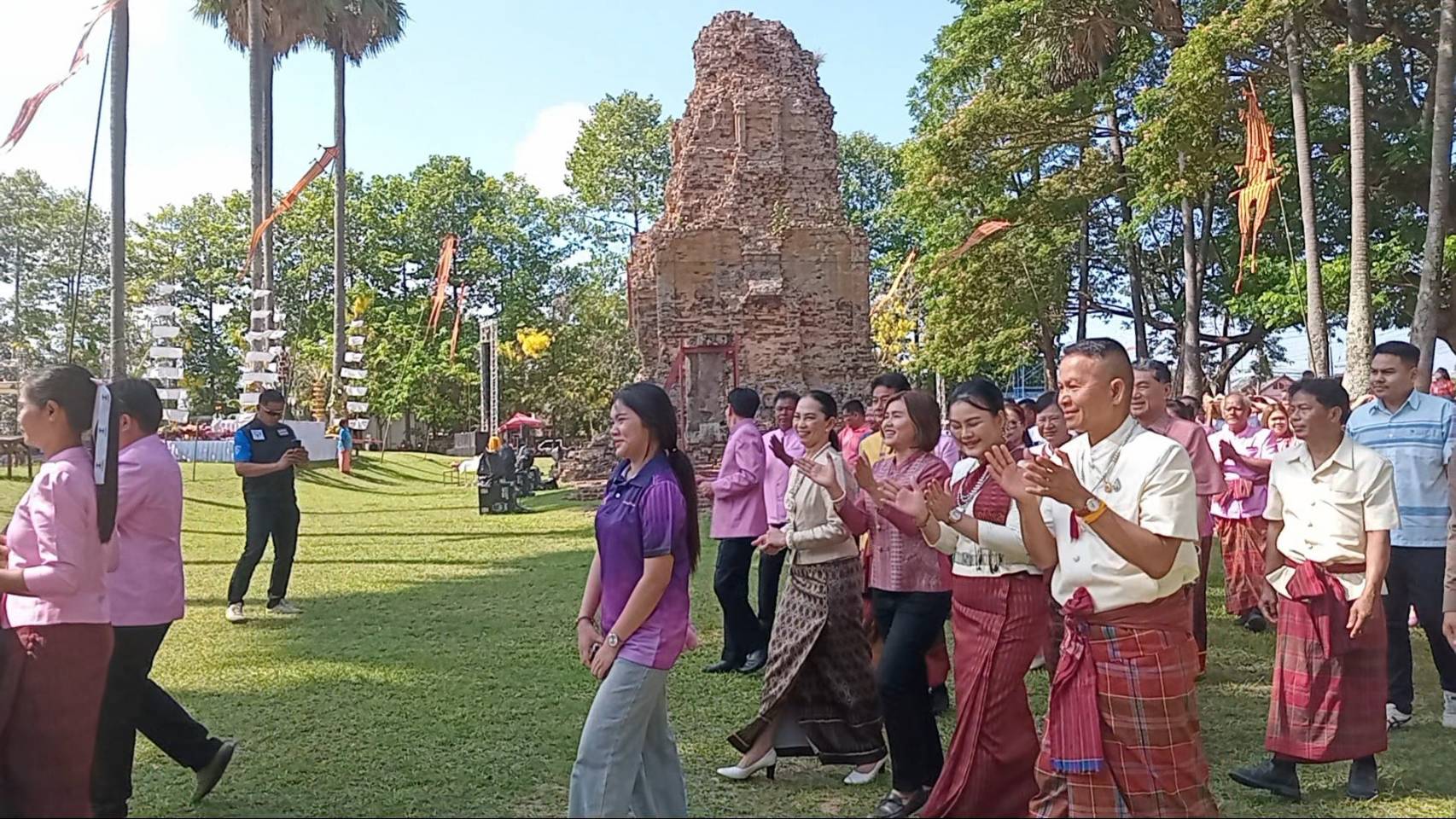 เมื่อวันที่ 11 เม.ย. 2568 เวลา09:09น. ที่บริเวณปราสาทภูมิโปน ตำบลดม อำเภอสังขะ จังหวัดสุรินทร์ นายล้ำเลิศ พัวพัฒนโชติ สมาชิกสภาผู้แทนราษฎรจังหวัดสุรินทร์ เขต 6 , น.ส.ธัญพร มุ่งเจริญพร” นายก อบจ.สุรินทร์ , นายอภิวัฒน์ พัวภัทรพงศ์ นายกองค์การบริหารส่วนตําบลดม ,นางสาวณิชาภา พัวพัฒนโชติ สมาชิกสภาจังหวัดสุรินทร์ , กำนัน ผู้ใหญ่บ้าน ผู้นำชุมชน ประชาชนชาวอำเภอสังขะ พร้อมด้วย นางสาววรัญญา หอมจันทึก”ธิดาผ้าไหมเมืองสุรินทร์ ครั้งที่ 7 ประจำปี 2568 “Miss Surin Silk Model 2025” น.ส.รสิตา เชิดโฉม รสิตา เชิดโฉม มิสแกรนด์ภูสิงห์ จ.ศรีษะเกต เเละน้องอิงฟ้า จุฑารัตน์ ธิดาประเกือม2563 ได้เข้าร่วมงาน “ประเพณีสืบสานตำนานปราสาทภูมิโปน” ครั้งที่ 26 ณ บริเวณปราสาทภูมิโปน ตำบลดม อำเภอสังขะ จังหวัดสุรินทร์ เพื่อสืบสานประเพณี วัฒนธรรมท้องถิ่นแบบเขมรโบราณ และร่วมประชาสัมพันธ์แหล่งโบราณสถาน “ปราสาทภูมิโปน” ซึ่งเป็นปราสาทหินที่มีอายุเก่าแก่ที่สุดในประเทศไทยให้เป็นที่รู้จักแพร่หลาย