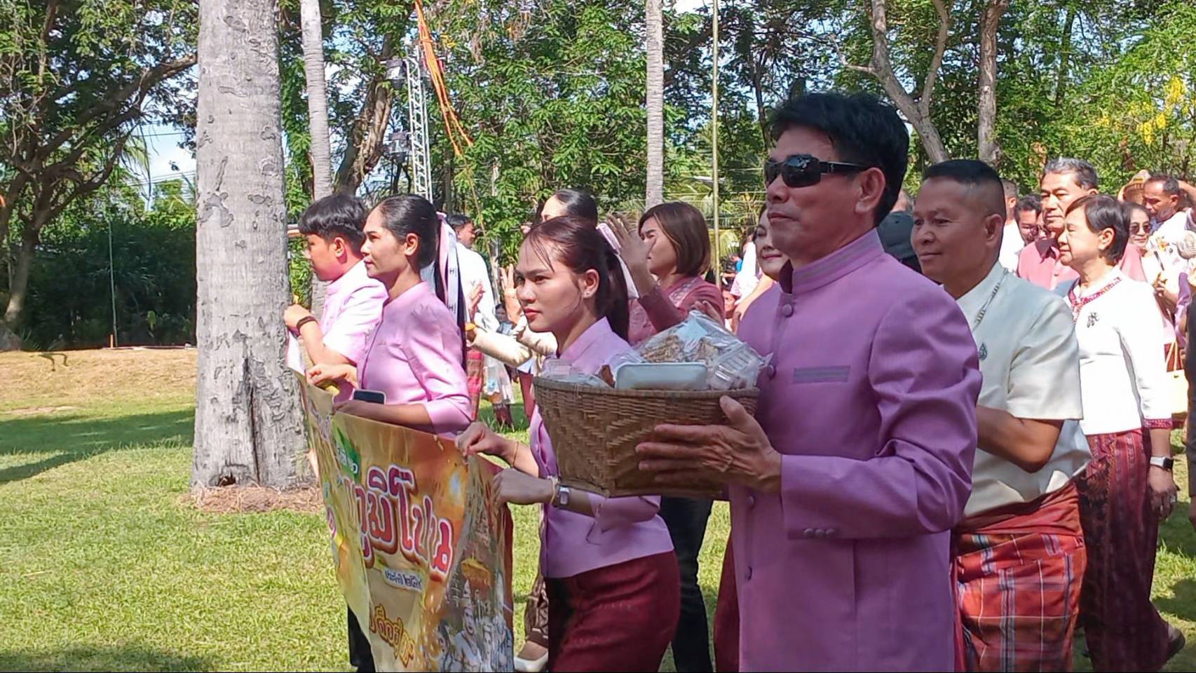 โดย นายอภิวัฒน์ กล่าวว่า การจัดงานในวันนี้ เป็นการสืบสานประเพณีและศิลปวัฒนธรรมของตำบลดม ซึ่งเป็นประเพณีและวัฒนธรรมแบบเขมรโบราณ พิธีบวงสรวงเซ่นไหว้บรรพบุรุษ เพื่อแสดงออกถึงความกตัญญูต่อบรรพชนที่ล่วงลับไปแล้ว มีการประกวดอาหารพื้นบ้าน ผลิตภัณฑ์สินค้าชุมชนของดีตำบลดม โดยเฉพาะผ้าไหมลายภูมิโปน