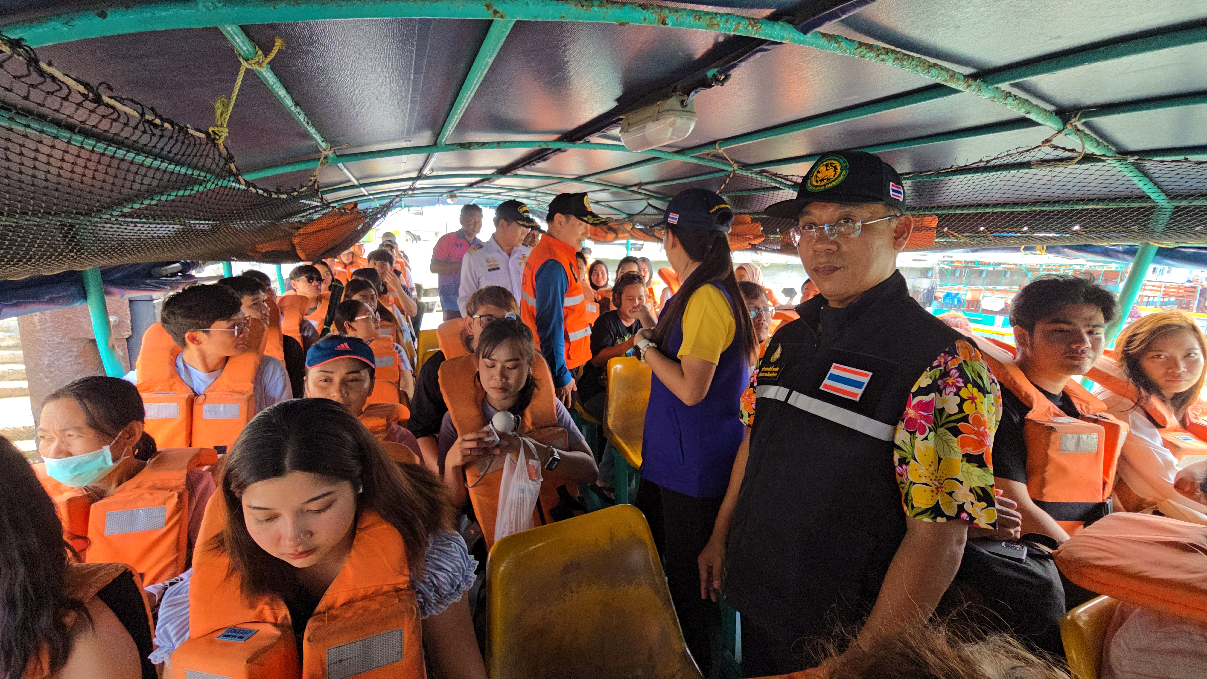 หลังจากนั้น นายชัยพร แพรภิรมย์รัตน์ รองผู้ว่าราชการจังหวัดชลบุรี และคณะ เดินทางไปยังท่าเทียบเรือเกาะลอย – เกาะสีชัง เพื่อตรวจสอบความเรียบร้อยที่ศูนย์อำนวยความสะดวกทางน้ำ ซึ่งพบว่ามีนักท่องเที่ยวเดินทางไปท่องเที่ยวยังเกาะสีชังเป็นจำนวนมาก จึงมอบนโยบายให้เจ้าหน้าที่ดูแลความสะดวกและความปลอดภัยให้กับนักท่องเที่ยว สวมใส่เสื้อชูชีพตลอดทุกครั้งเมื่อต้องเดินทางทางเรือ การเข้มงวดกับจำนวนผู้โดยสาร ห้ามเกินกำหนดของเรือ ผู้ที่ขับขี่เรือจะต้องมีความพร้อม ไม่ดื่มสุราขณะทำหน้าที่ขับเรือ โดยมี เจ้าหน้าที่จากกรมเจ้าท่า ตำรวจน้ำ เทศบาลเมืองศรีราชา และฝ่ายปกครอง ให้การต้อนรับ