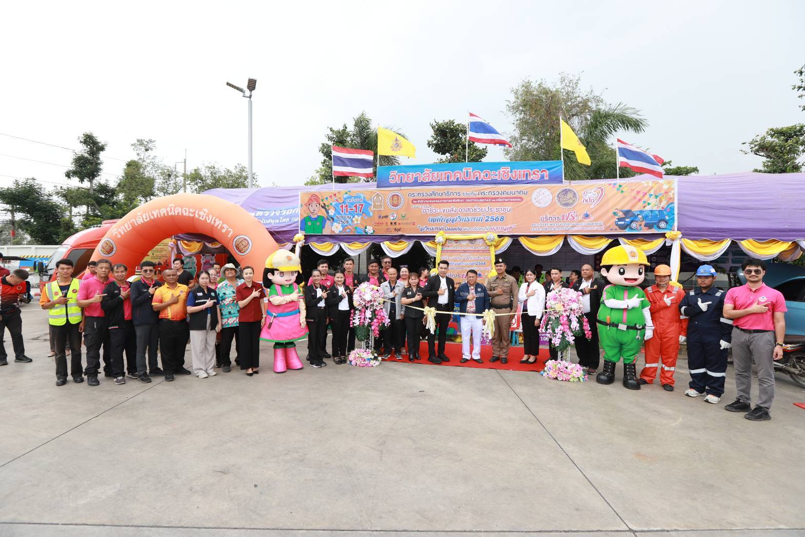 เวลา 14.00 น. ว่าที่พันตรี ดร.วัชรพล ลักษณลม้าย ผู้อำนวยการ(วิทยฐานะเชี่ยวชาญ) วิทยาลัยเทคนิคฉะเชิงเทรา – ผู้อำนวยการสำนักงานอาชีวศึกษาจังหวัดฉะเชิงเทรา พร้อมด้วยคณะผู้บริหาร ครู และบุคลากรทางการศึกษา หน่วยงานภาครัฐและเอกชน “”เข้าร่วม พิธีเปิดกิจกรรม “อาชีวะ-ขนส่ง อาสาช่วยประชาชน : เทศกาลสงกรานต์ 2568” ระหว่าง สํานักงานคณะกรรมการการอาชีวศึกษา กรมการขนส่งทางบก และเครือข่ายภาคเอกชน โดยมี พลตํารวจเอกเพิ่มพูนชิดชอบ รัฐมนตรีวา่การกระทรวงศึกษาธิการ เป็นประธานในพิธีเปิด บริการ “อาชีวะ-ขนส่ง อาสาช่วยประชาชน : เทศกาลสงกรานต์ 2568”