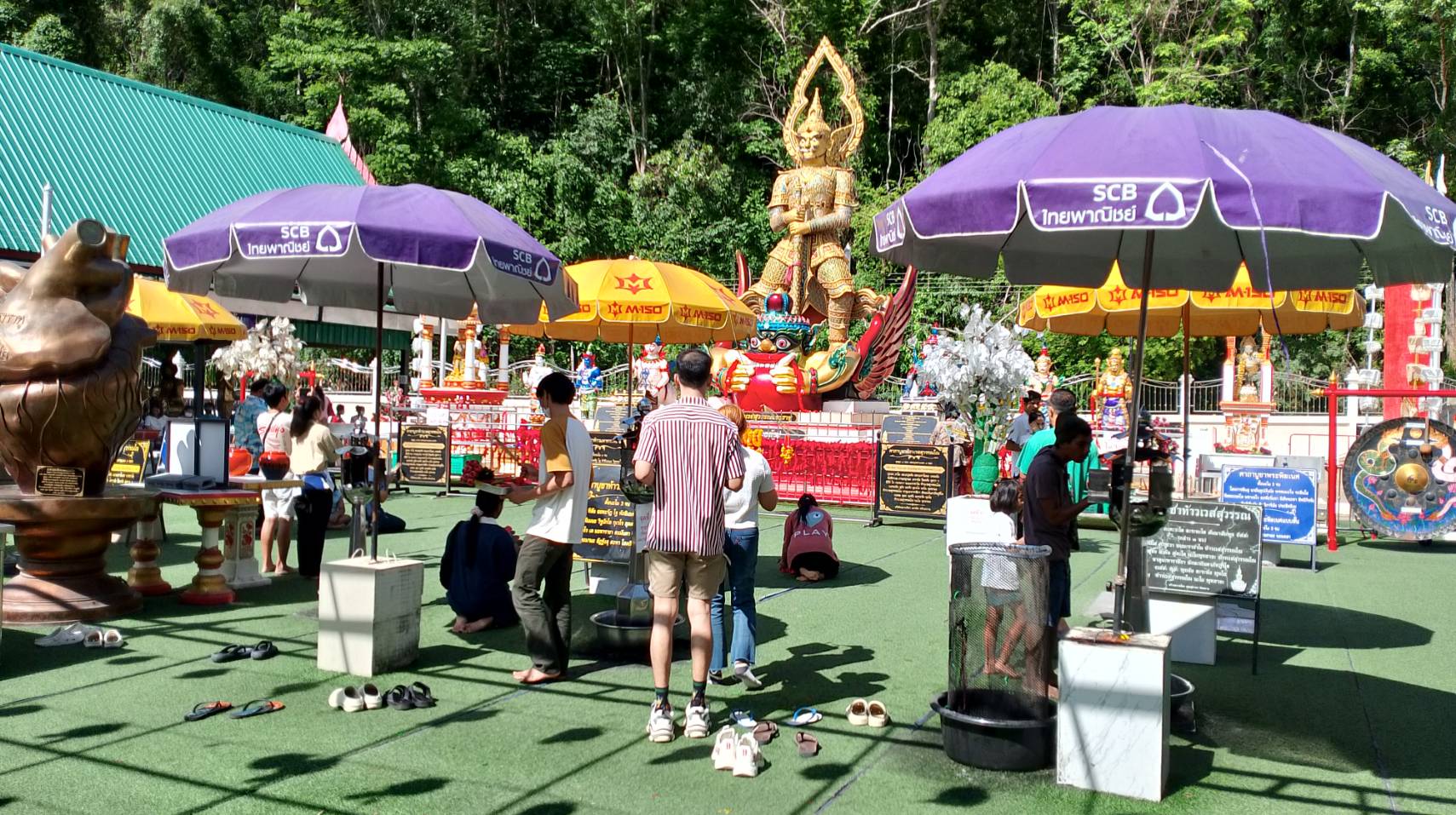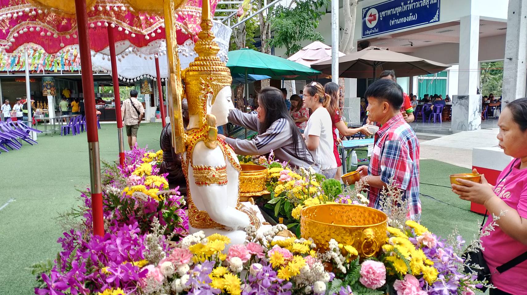 เมื่อเวลา10.00น.(13เม.ย.2568) ที่วัดเขาช่องลม ตำบลเขาคันทรง อ.ศรีราชา จ.ชลบุรี ประชาชนต่างเดินทางมาพักผ่อนและท่องเที่ยวในวันที่โรงงาน ห้างร้าน บริษัท ปิดทำการ ในช่วงเทศกาลสงกรานต์เพื่อให้พนักงานเดินทางกลับภูมิลำเนากัน จึงพากันเข้ามากราบไหว้ท้าวเวสสุวรรณทรงราหู(ท่านทองล้น) ที่ตั้งตระหง่านอยู่หน้าเขาช่องลม ก่อนเดินทางกลับภูมิลำเนากัน ซึ่งพบว่าประชาชนที่พากันมากราบไหว้บูชาด้วยเครื่องบูชาหลากหลาย ซึ่งทางวัดได้จัดเตรียมไว้ให้บูชา ทั้ง พวงมาลัยสีแดง ดอกกุหลาบแดง 9 ดอก ธูป 9 ดอก เทียน น้ำแดง ประทัด เพื่อขอพร ขอโชคลาภ เงินทอง ลาภยศหน้าที่การงาน เจริญรุ่งเรืองมีชื่อเสียง เงินทองไหลมาเทมา เป็นสิริมงคล ความสำเร็จ สมปรารถนาทุกประการ และอธิษฐานขอเลขเด็ดไปจุดที่กระถางธูป ซึ่งในตอนนี้ทางวัดได้นำรูปหล่อพระครูพิพิธศาสนการ (เหลือ ปญฺญาวโร)อดีตเจ้าอาวาสวัดเขาช่องลมและพรพุทธรูปสมเด็จองค์ปฐม รูปหล่อเหมือนยืนหลวงปู่ฮก วัดมาบลำบิด มาให้ประชาชนได้กราบไหว้บูชา-ขอพรรวมถึงรดน้ำขอพรในช่วงเทศกาลสงกรานต์กันที่ลานท้าวเวสสุวรรณ ซึ่งนอกจากจะมีคนมาขอพระ-ขอโชคลาภกับองค์ท้าวเวสสุวรรณทรงราหู(ท่านทองล้น)แล้วบางคนยังมาขอพรให้ขายที่ดินได้ซึ่งก็สำเร็จตามที่ขอสามารถขายที่ดินกันได้แล้วกว่า30รายแล้วและพากันนำของมาแก้บนตามที่ให้ไว้กับองค์ท้าวเวสสุวรรณ