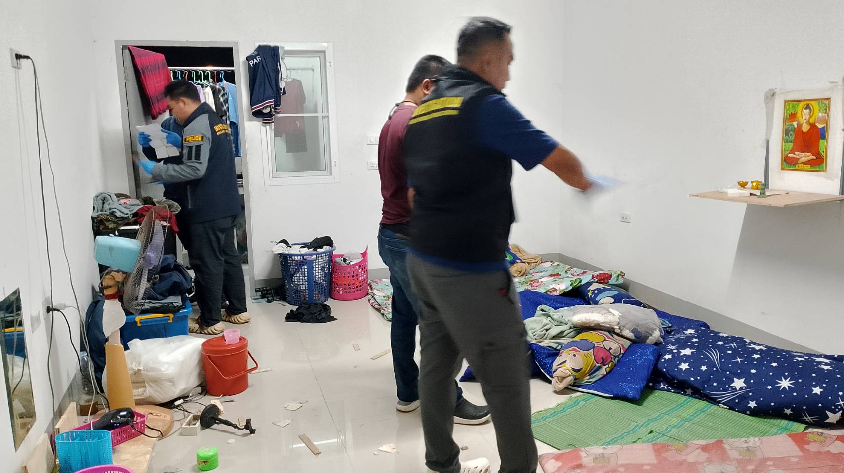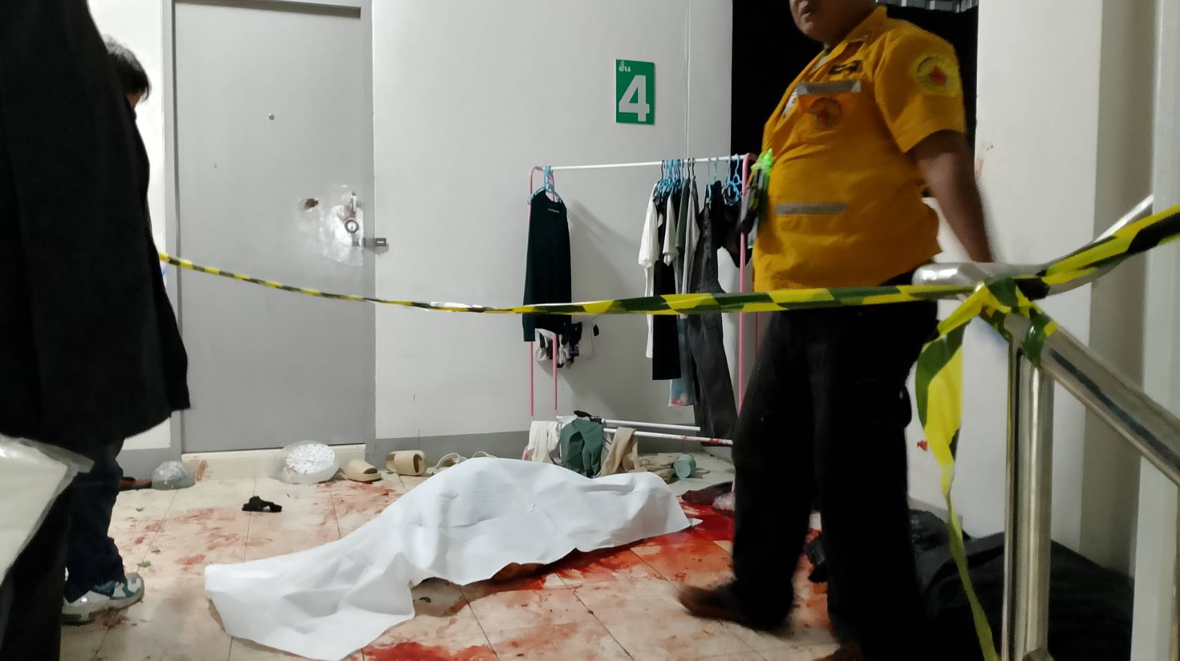 เมื่อเวลา20.00น.(14เม.ย.2568)พ.ต.ต.จอมพต คงศิลป์ สารวัตรเวรสภ.บ่อวินได้รับแจ้งเหตุมีพม่าแทงพม่าตายคาที่1รายบาดเจ็บสาหัส1รายที่คอนโด พื้นที่หมู่8 ตำบลบ่อวิน อำเภอศรีราชา หลังรับแจ้งจึงรายงานให้ พ.ต.อ.กฤศ ธิติทัศนะ ผกก.สภ.บ่อวิน พ.ต.ท.สมศักดิ์ บุตะกะ รอง ผกก.ป. พ.ต.ท.สมคิด ยานะพันธ์ รอง ผกก.สส. พ.ต.ท.สุพรรณ ใจหาญ สวป.ทราบพร้อมร่วมเดินทางไปตรวจสอบยังที่เกิดเหตุ โดยได้ประสานงานให้ทางอาสาหน่วยกู้ภัยเพียวเยี้ยงไท้ศรีราชาร่วมตรวจสอบผู้บาดเจ็บและเสียชีวิตด้วยและประสานเจ้าหน้าที่ตำรวจศูนย์พิสูจน์หลักฐาน 2และแพทย์เวรโรงพยาบาลอ่าวอุดมมาตรวจพิสูจน์ร่วมเนื่องจากเป็นคดีอุกฉรรจน์สะเทือนขวัญฆ่ากันอย่างโหดเหี้ยม