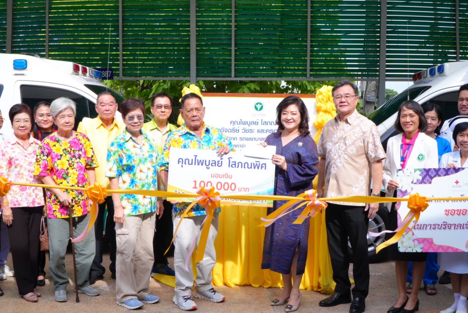 จำนวน 100,000 บาท (หนึ่งแสนบาท) เพื่อใช้ในการบำบัดทุกข์บำรุงสุขให้กับประชาชน จังหวัดฉะเชิงเทราด้วย การได้รับมอบรถพยาบาลฉุกเฉิน แสดงให้เห็นถึงความเสียสละและความตั้งใจ