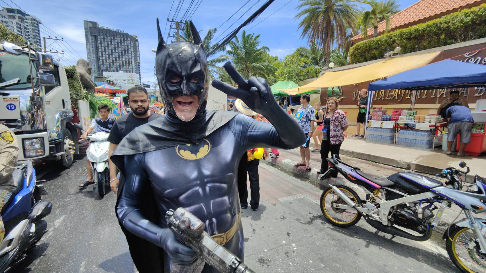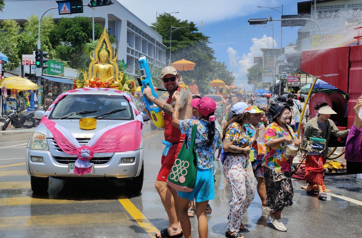 บางส่วนก็นั่งรถกระบะพร้อมบรรทุกถังน้ำสาดใส่ผู้คนที่ผ่านไปมา บ้างก็ขับขี่รถจักรยานยนต์ตามถนนสายหลักของเมืองพัทยา คาดว่าในช่วงเวลาเย็นตอนมืดค่ำผู้คนจะหนาแน่นมากกว่านี้ ดังเช่นทุกปีที่ผ่านมา