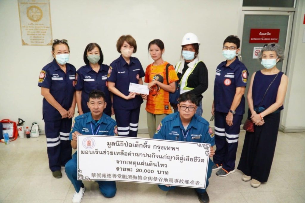 วันนี้ (วันอังคารที่ 22 เมษายน พ.ศ.2568) มูลนิธิป่อเต็กตึ๊ง นำโดย นางศิริกุล โอภาสวงศ์ กรรมการและเลขาธิการ พร้อมด้วย นายรัชพร ประสงค์ทรัพย์ หัวหน้าแผนกสาธารณภัย นำทีม แผนกสาธารณภัย ฝ่ายสังคมสงเคราะห์ ลงพื้นที่ให้ความช่วยเหลือผู้ประสบอัคคีภัยในพื้นที่ซอยโรงธูป อำเภอบ้านโป่ง จังหวัดราชบุรี รวมจำนวน 49 คน โดยมอบเงินสดคนละ 3,500 บาท พร้อมมอบเครื่องอุปโภคบริโภค รวมจำนวน 17 ชุด รวมงบประมาณการช่วยเหลือผู้ประสบอัคคีภัยทั้งสิ้น 214,000 บาท โดยมี นายนรสิงห์ อรุณบรรเจิดกุล ปลัดเทศบาลเมืองบ้านโป่ง ปฏิบัติหน้าที่นายกเทศมนตรีเมืองบ้านโป่ง พร้อมด้วย คณะมูลนิธิรวมใจการกุศลราชบุรี และ คณะอาสาสมัครเฉพาะกิจ มูลนิธิป่อเต็กตึ๊ง ร่วมในพิธี ณ เทศบาลบ้านโป่ง อำเภอบ้านโป่ง จังหวัดราชบุรี หลังจากนั้น นางศิริกุล โอภาสวงศ์ กรรมการและเลขาธิการมูลนิธิป่อเต็กตึ๊ง พร้อมคณะ ได้เดินทางไปยัง สถาบันนิติเวชวิทยา โรงพยาบาลตำรวจ เพื่อมอบเงินช่วยเหลือค่าฌาปนกิจแก่ญาติผู้เสียชีวิตจากเหตุแผ่นดินไหว จำนวน 7 รายๆ ละ 20,000 บาท รวมเป็นเงิน 140,000 บาท