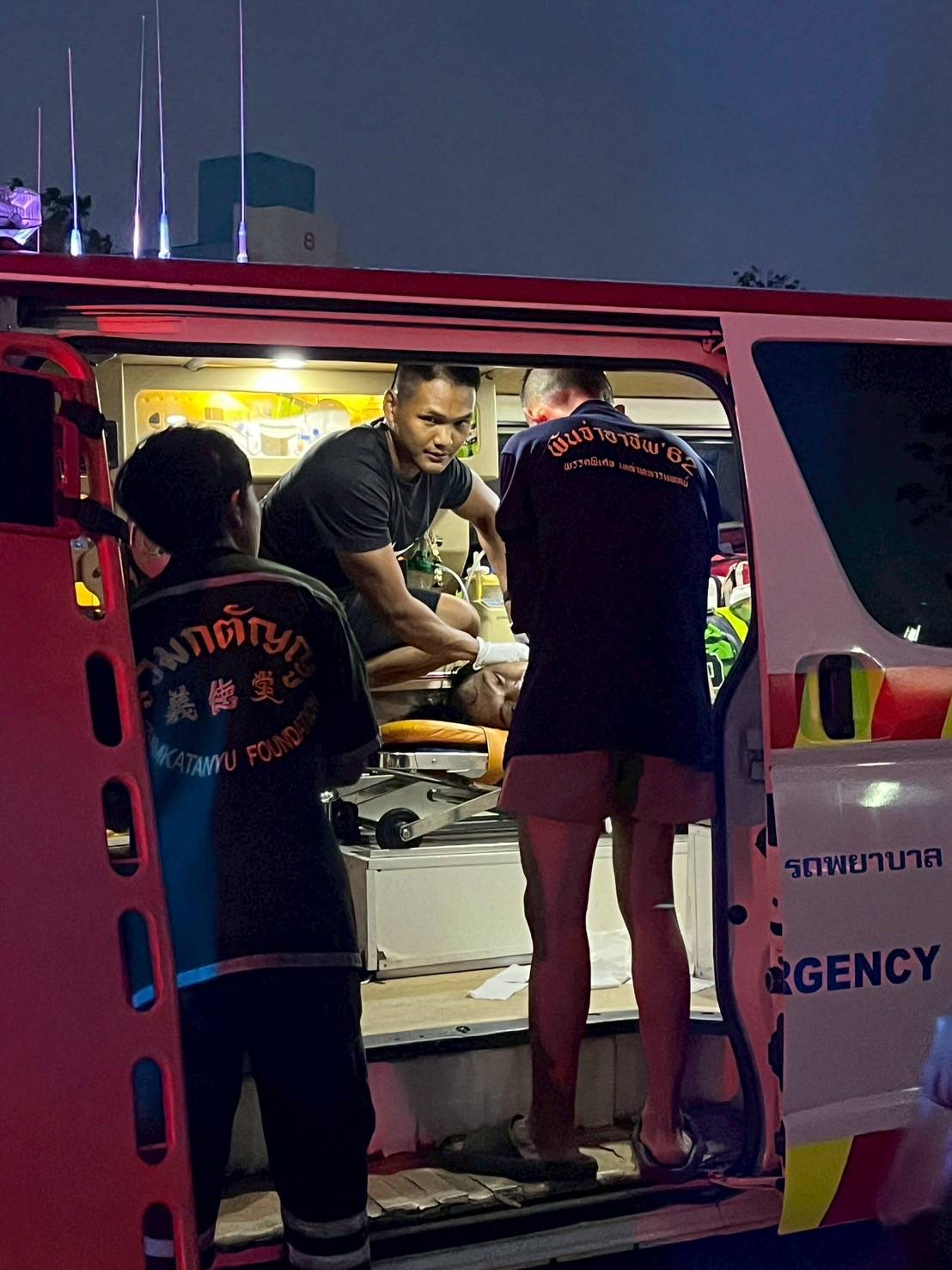 และในเวลาต่อมาผู้ป่วยมีอาการชักเกร็งและหัวใจหยุดเต้น หมดสติ ไม่มีชีพจร จึงได้ทำการกู้ชีพขั้นพื้นฐาน (CPR) รอทีมปฏิบัติการขั้นสูงจาก รพ.สมเด็จพระปิ่นเกล้า กรมแพทย์ทหารเรือ นำส่งผู้ป่วย CPR ต่อเนื่อง เข้าห้องฉุกเฉิน รพ.สมเด็จพระปิ่นเกล้า กรมแพทย์ทหารเรือ ให้การรักษาพยาบาล ต่อไป เหตุเกิด เมื่อวันที่ 24 เมษายน 2568 เวลาประมาณ 18.45 น.