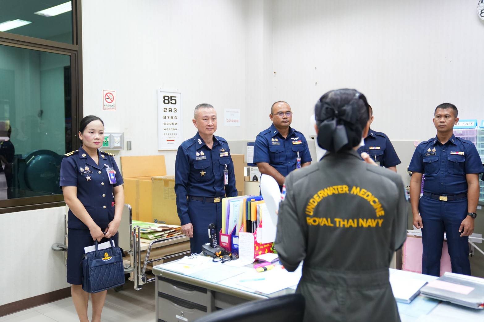 พล.ร.ต.พัฒนชัย เฉลิมวรรณ์ ผอ.รพ.สมเด็จพระนางเจ้าสิริกิติ์ กรมแพทย์ทหารเรือ ให้การต้อนรับคณะศึกษาดูงานหลักสูตร เวชศาสตร์ทหารอากาศ สำหรับผู้ปฏิบัติ กรมแพทย์ทหารอากาศ โดยมี น.อ.อัศวิน คนชม รอง ผอ.ศูนย์ปฏิบัติการแพทย์ทหารอากาศ เป็นหัวหน้าคณะในการศึกษาดูงานในครั้งนี้ ซึ่งกิจกรรมประกอบด้วย การรับฟังการบรรยายสรุป ณ ห้องประชุม ป.4 อาคารอำนวยการ และเยี่ยมชมศูนย์เวชศาสตร์ความดันบรรยากาศสูง ของ รพ.สมเด็จพระนางเจ้าสิริกิติ์ฯ โดยมีผู้แทนหน่วยงานของ รพ.สมเด็จพระนางเจ้าสิริกิติ์ฯ ร่วมให้คำแนะนำขีดความสามารถของหน่วยหน้างาน ในครั้งนี้