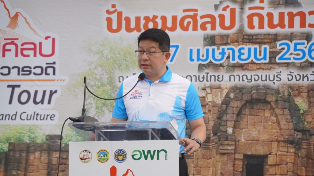วันนี้ (27 เมษายน 2568) เวลา 06.10 น. ณ โรงงานกระดาษไทยกาญจนบุรี อำเภอเมือง จังหวัดกาญจนบุรี นายอธิสรรค์ อินทร์ตรา ผู้ว่าราชการจังหวัดกาญจนบุรี มอบหมายให้ นายสิทธิวีร์ วรรณพฤกษ์ รองผู้ว่าราชการจังหวัดกาญจนบุรี เป็นประธานเปิดกิจกรรมปั่นทางไกลตามรอยอารยธรรมทวารวดี ภายใต้ชื่องาน “ปั่นชมศิลป์ ถิ่นทวารวดี” สนามที่ 2