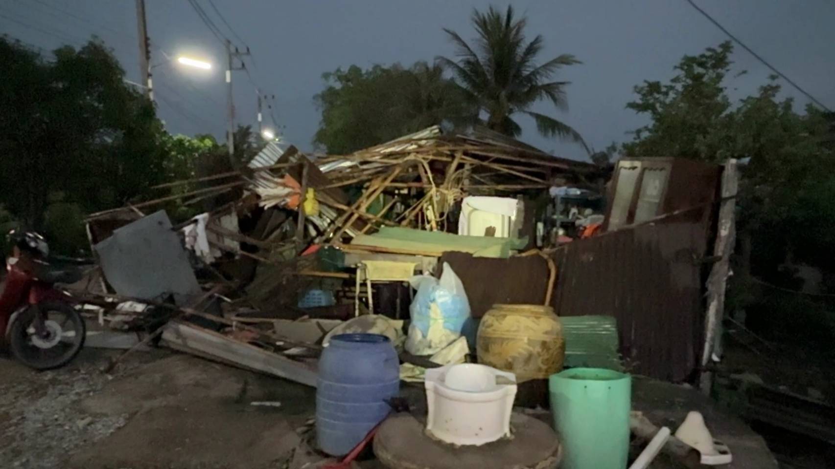 ซึ่งหลังจากฝนหยุดตก ผู้สื่อข่าวได้ลงพื้นที่สำรวจความเสียหาย พบว่าแรงลม ทำให้บ้านเรือนของประชาชนทรุดลงไปในน้ำ ซึ่งบ้านที่ได้รับความเสียหายคือบ้านเลขที่ 145 หมู่ 1 ตำบลบางขนาก อำเภอบางน้ำเปรี้ยว จังหวัดฉะเชิงเทรา เป็นบ้านของนายคำพันธ์ สารบรรณ์ อายุ 73 ปี ลักษณะเป็นบ้านไม้ มีสะพานทอดลงไปในคูน้ำ ซึ่งบ้านได้พังเสียหายทรุดลงไปในน้ำทั้งหลัง หลังคากระเบื้องบางส่วนปลิวหายไปกับแรงลม โดยบ้านหลังนี้ นางประจบ สารบรรณ์ อายุ 70 ปี ภรรยาของนายคำพันธ์ ได้รับบาดเจ็บ ปวดบริเวณแผ่นหลัง ญาติๆได้เร่งนำตัวไปรักษาที่โรงพยาบาลบางน้ำเปรี้ยวก่อนหน้านี้