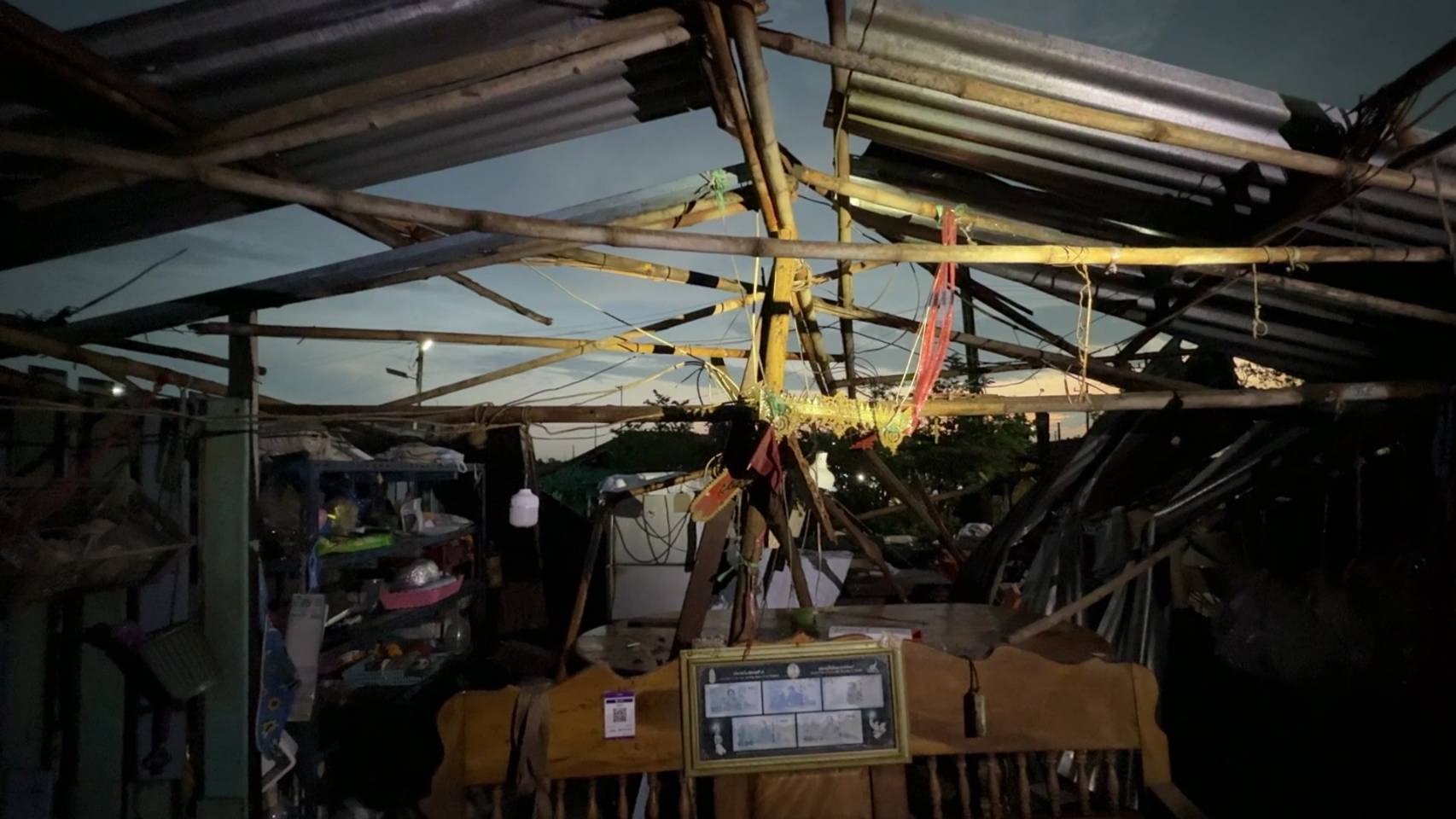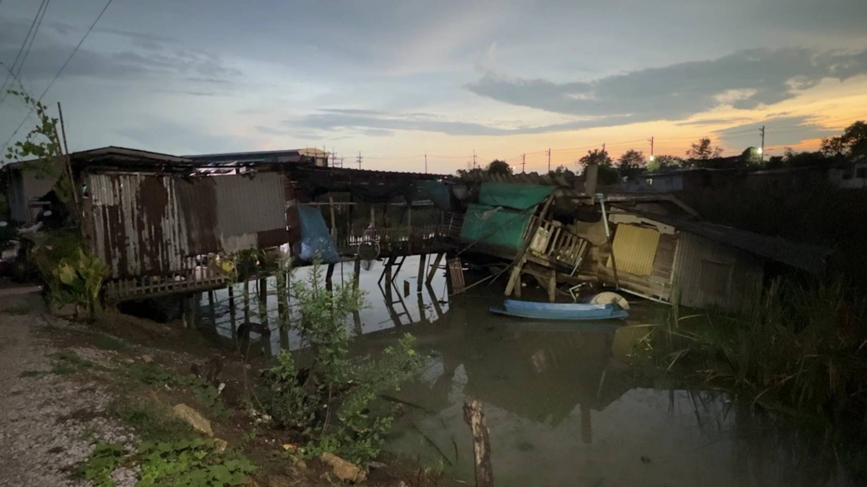 ผู้สื่อข่าวเดินสำรวจบริเวณโดยรอบชุมชนนั้น พบว่ามีบ้านเรือนเสียหาย หลังคากระเบื้องและสังกะสี ปลิวไปกับลมประมาณ 10 หลังคาเรือนในบริเวณโดยรอบจุดนี้ ซึ่งมีบ้านหลังหนึ่งที่ฝาสังกะสีกำแพงส้วมซึม ได้ปลิวลอยข้ามถนนไปอีกฝั่ง ทั้ง 4 ด้าน หรือแต่ส้วมซึม ซึ่งคืนนี้นอกจากในบ้านจะไม่มีหลังคาแล้ว ก็ไม่สามรถเข้าห้องน้ำได้ จึงได้สอบถามทราบว่าคืนนี้ คงต้องอาศัยห้องน้ำเพื่อนบ้านใช้ไปก่อน รอวันพรุ่งนี้จะหาวิธีซ่อมแซมห้องน้ำให้ใช้ได้ก่อน รอทางผู้ใหญ่บ้าน แจ้งทางอำเภอบางน้ำเปรี้ยว ให้เข้ามาตรวจสอบความเสียหาย