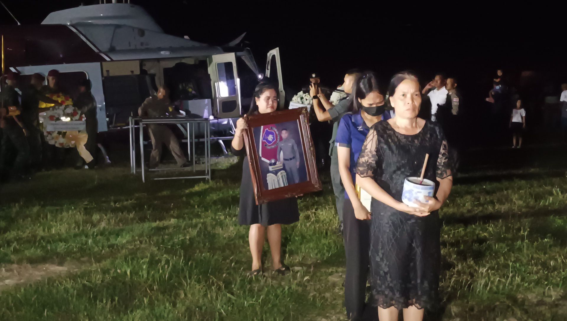 วันที่ 29 เม.ย. 2568 ที่โรงเรียนวัดคงคาเลียบ ต.ฉลอง อ.สิชล จ.นครศรีธรรมราช ศพตำรวจกล้าถึงภูมิลำเนา อ.สิชล จ.นครศรีธรรมราช โดยเฮลิคอปเตอร์ของสำนักงานตำรวจแห่งชาติ ลงจอดกลางสนามฟุตบอล นำศพลงจากเฮลิคอปเตอร์ได้ทำพิธีทอดผ้าบังสกุลกลางสนามฟุตบอล เสร็จแล้วนำศพขึ้นรถทหารของค่ายฝึกการรบพิเศษสิชลไปทำพิธีที่วัดคงคาเลียบ ต.ฉลอง อ.สิชล จ.นครศรีธรรมราช ห่างกันเพียง 700เมตร โดยมีเจ้าหน้าที่รับผิดชอบและผู้นำชุมชน ชาวบ้านร่วมรับศพเป็นจำนวนมาก