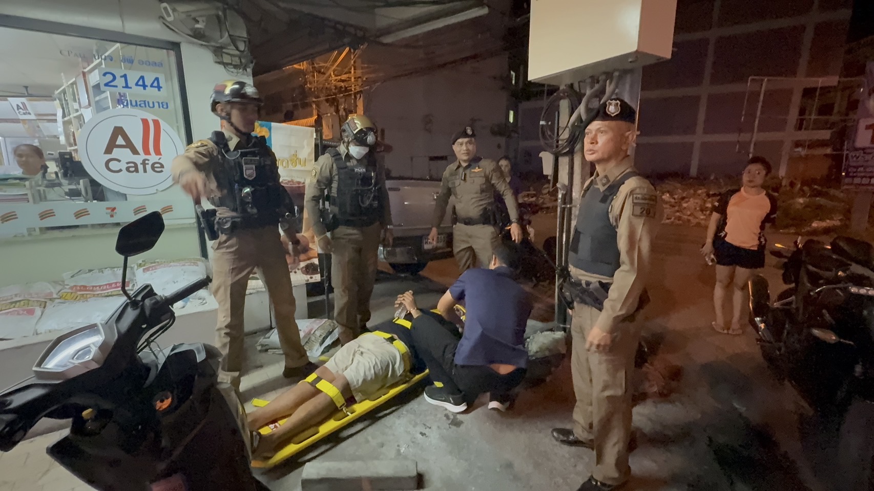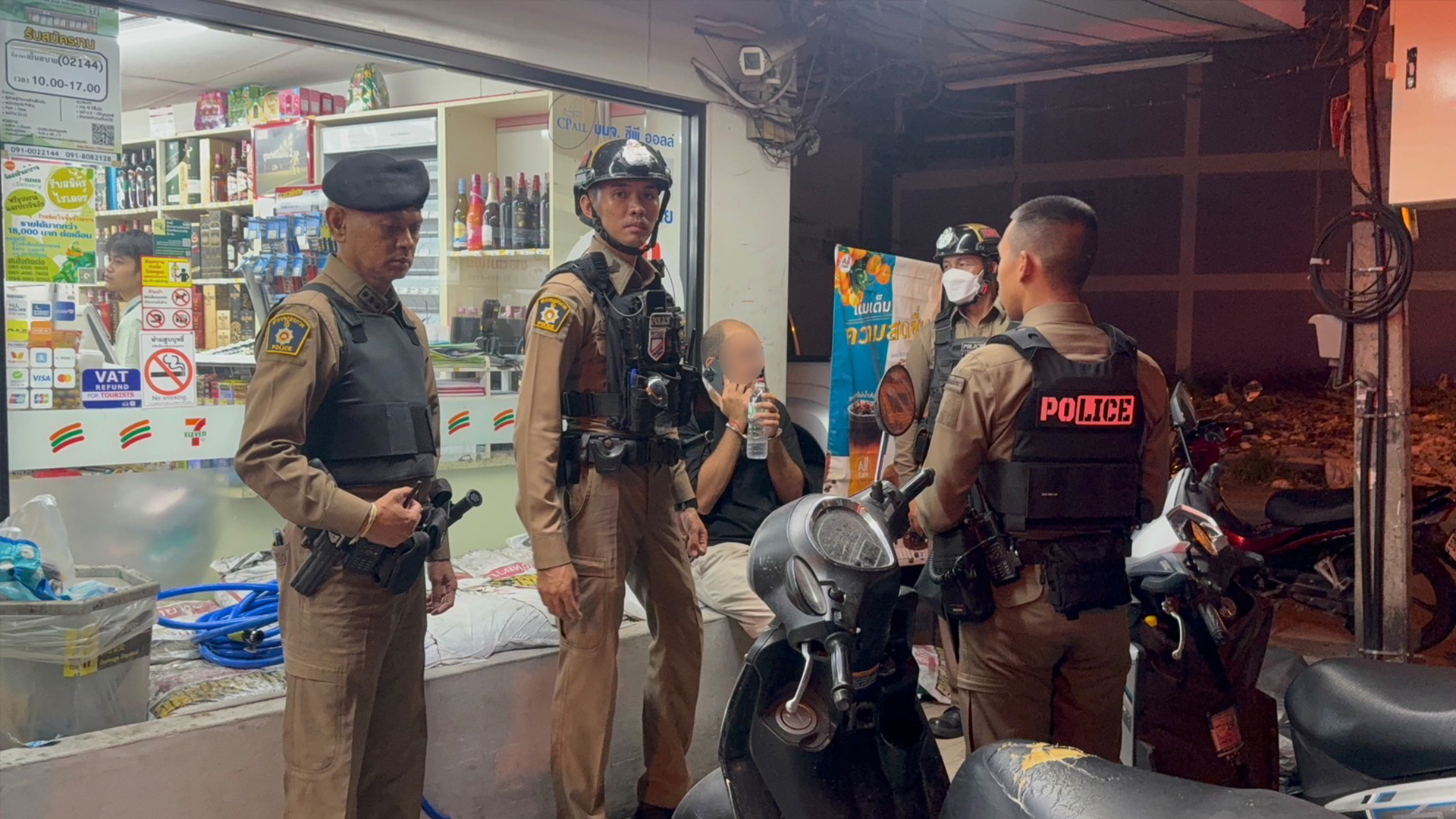 โดยพนักงานร้านสะดวกซื้อ ให้ข้อมูลกับเจ้าหน้าที่ตำรวจว่าตนเองไม่ทราบมาก่อนว่าบุคคลดังกล่าวไปก่อเหตุลักษณะนี้ที่อื่นมา เผื่อเอาตัวเข้ามาภายในร้านก็พยายามจะเดินเข้ามาหลังเคาน์เตอร์และล็อกตัวพนักงาน จะใช้ขวดเหล้าฟาดใส่ ทั้งยังกันไม่ให้ลูกค้าหนีออกจากตัวร้าน โชคดีที่เจ้าหน้าที่ตำรวจผ่านมาประสบเหตุ จึงเข้ามาล็อกตัวได้โดยที่ไม่มีผู้ใดได้รับบาดเจ็บแต่อย่างใด
