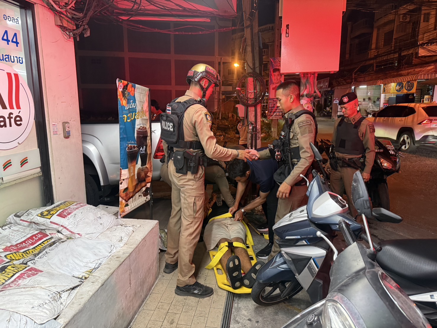 เมื่อเวลา 01.06 น.วันที่ 30 เมษายน 2568 พ.ต.ท.สุชาติ ดุสดี สวป. สภ.เมืองพัทยา รับแจ้งเหตุก่อความเดือดร้อน ให้กับชาวบ้าน เหตุเกิดที่ร้านสะดวกซื้อแห่งหนึ่งริมถนนซอยพัทยาใต้ 17 ต.หนองปรือ อ.บางละมุง จ.ชลบุรี หลังรับแจ้งจึงพร้อมด้วย ร.ต.อ.ปาณสาร ครองสิทธิ์ รอง สวป.สภ.เมืองพัทยา รีบนำกำลังไปตรวจสอบ