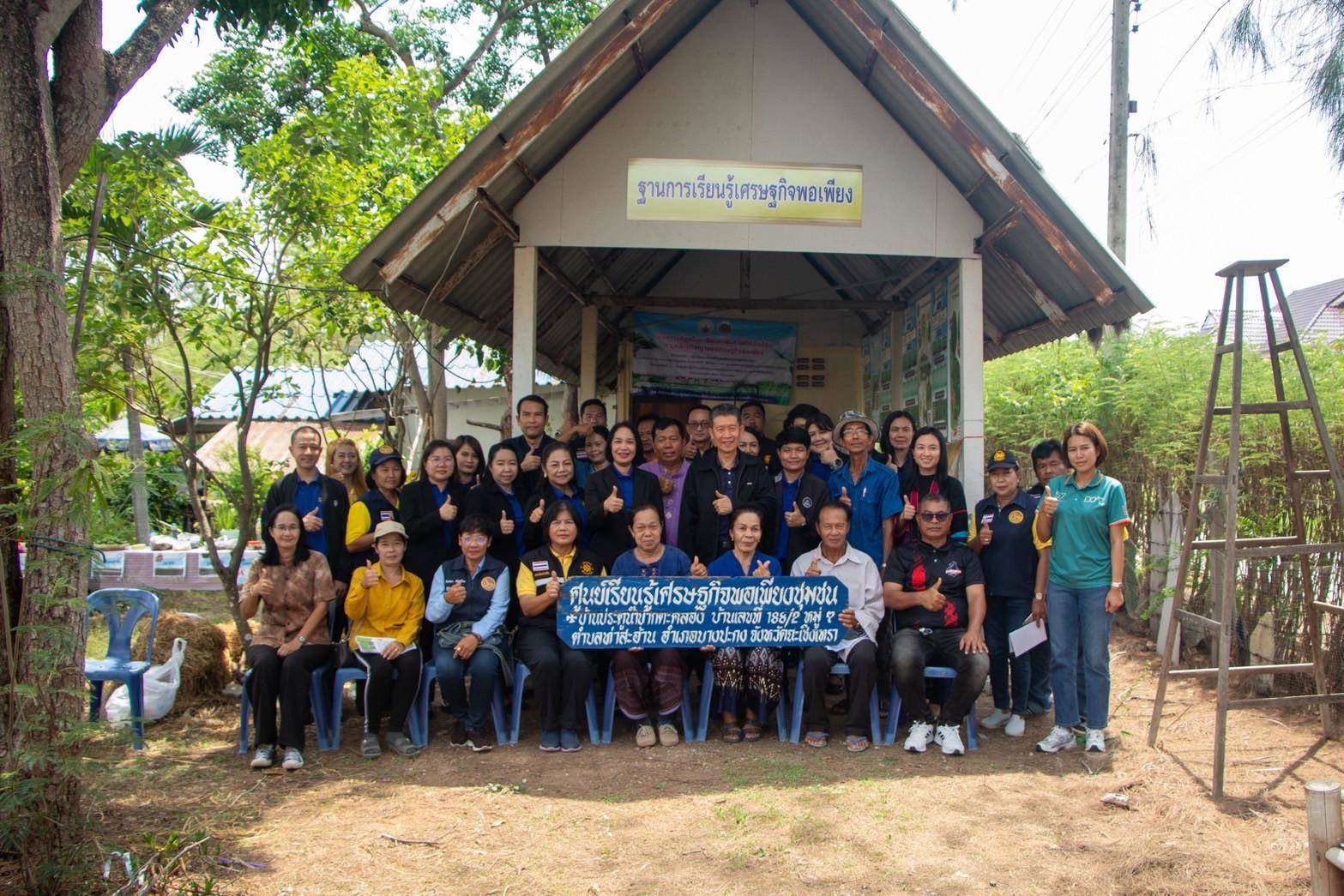 กลุ่มที่ 2 โครงการส่งเสริมอาชีพและเพิ่มรายได้ครัวเรือนตามหลักปรัชญาของเศรษฐกิจพอเพียง กิจกรรม : สนับสนุนการขับเคลื่อนเขตพัฒนาเศรษฐกิจพอเพียง (Sufficiency Economy Development Zone (SEDZ)) : ส่งเสริมการสร้างชุมชนเศรษฐกิจพอเพียงต้นแบบจังหวัดฉะเชิงเทรา ณ ตำบลท่าสะอ้าน อำเภอบางปะกง นำคณะโดย ว่าที่ร้อยตรี พิเชียน ลิมป์หวังอยู่ อดีตผู้ว่าราชการจังหวัดตราด