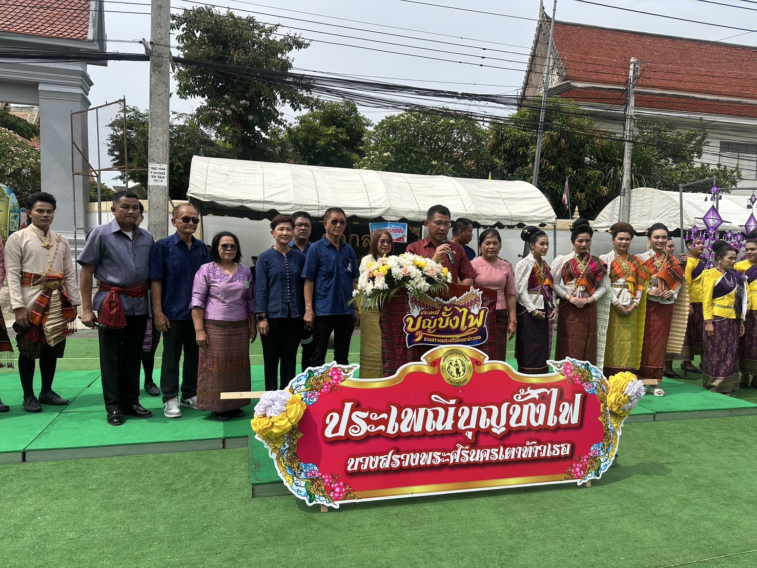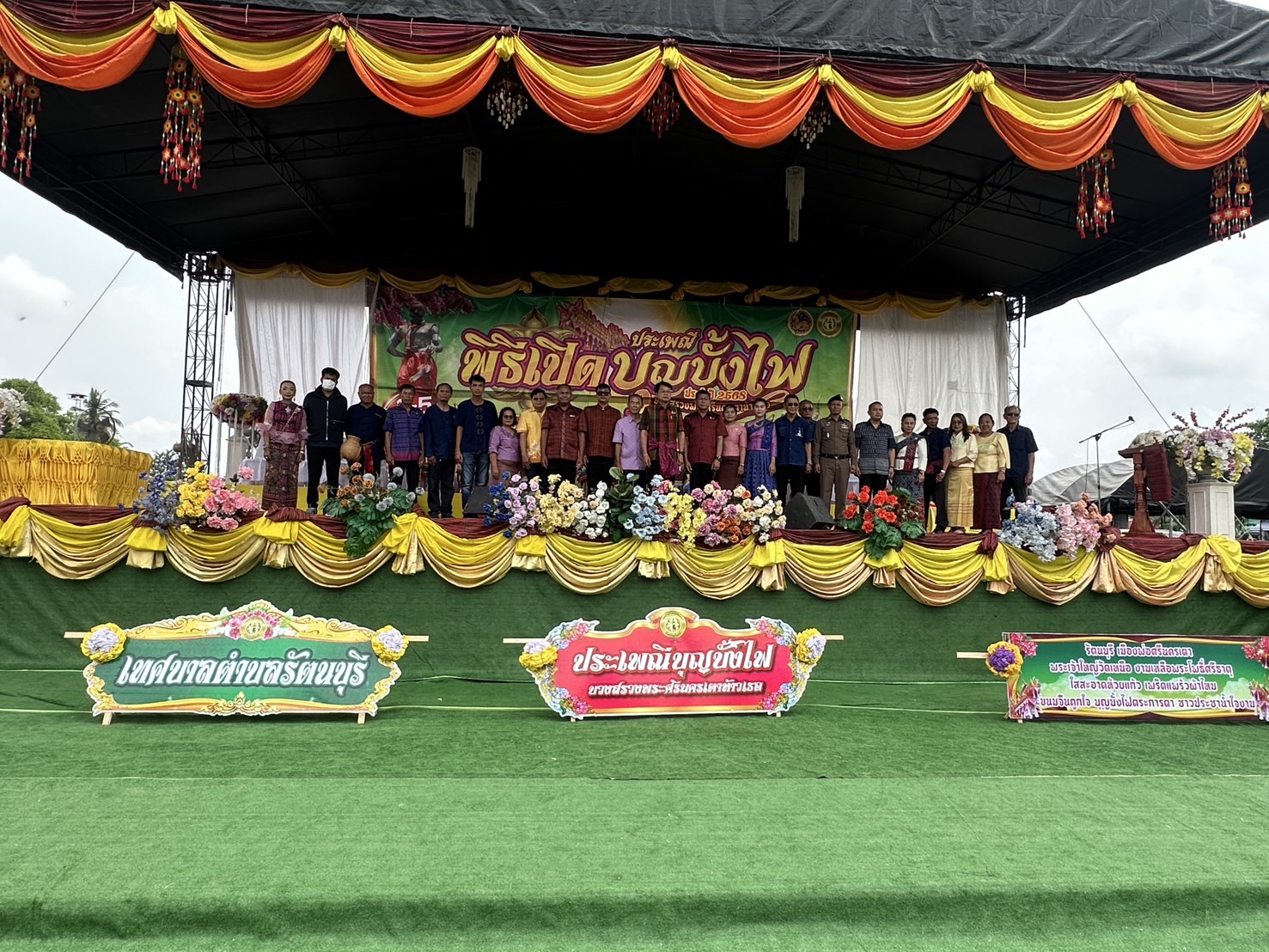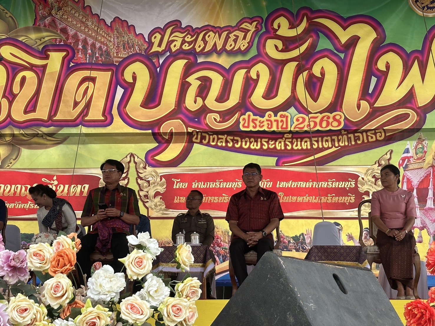 เมื่อเวลา 10.00 น. วันนี้ ( 3 พ.ค. 2568 ) ที่บริเวณหน้าวัดกลาง อำเภอรัตนบุรี จ.สุรินทร์ ได้จัดให้มีพิธีเปิดงานประเพณีบุญบั้งไฟ บวงสรวง “พระศรีนครเตาท้าวเธอ” อำเภอรัตนบุรี ประจำปี 2568 ขึ้น โดยมี นายชำนาญ ชื่นตา ผู้ว่าราชการจังหวัดสุรินทร์ เดินทางมาเป็นประธานในพิธีเปิด ซึ่งมี พันจ่าเอก สุวิน ห้องแซง นายอำเภอรัตนบุรี เป็นผู้กล่าวรายงานวัตถุประสงค์ในการจัดงาน พร้อมด้วย นายวีระ เทพวงศ์ศิริรัตน์ นายกเทศมนตรีเทศบาลรัตนบุรี นางสาวเพียงเดือน เทพวงศ์ศิริรัตน์ รองประธานสภาองค์การบริหารส่วนจังหวัดสุรินทร์ พ.ต.อ.สุวรรณ ผลอินทร์ ผกก.สภ.รัตนบุรี นายกองค์การบริหารส่วนตำบลทุกตำบลในอำเภอรัตนบุรี หัวหน้าส่วนราชการทุกภาคส่วน พี่น้องประชาชนชาวอำเภอรัตนบุรี และจากอำเภอใกล้เคียงเดินทางมาร่วมงานเป็นจำนวนมาก