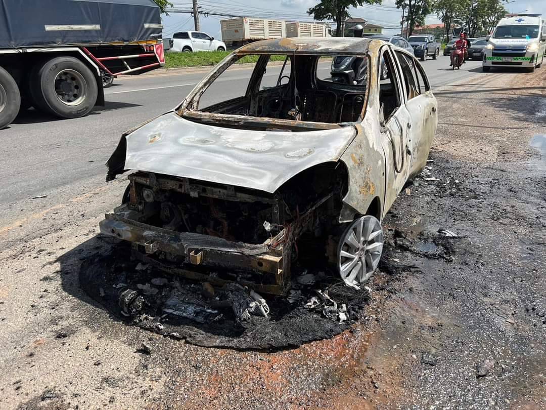 เจ้าของรถ หมายเลขทะเบียน ฆธ-3307 กรุงเทพมหานครยี่ห้อ mitsubishi mirage พูดเสียงสั่นด้วยความตกใจ ขับรถกำลังพาครอบครัวรวม5ชีวิต ไปเที่ยวกทม. ระหว่างทางได้กลิ่นเหม็นไหม้เลยเปิดกระจก ก่อนได้ยินเสียงชาวบ้านตะโกนบอกให้จอดรถเพราะไฟลุก