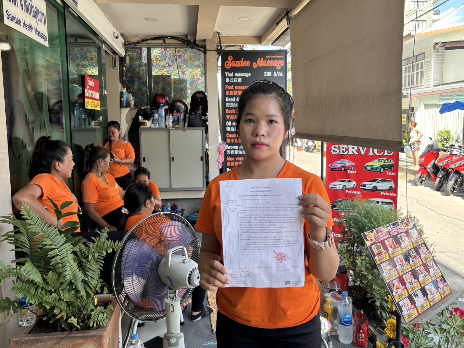 ขณะที่น.ส.สุภัสสรา สมสวย อายุ 19 ปี พนักงานหมอนวด ผู้เสียหาย เล่าเหตุการณ์ว่าหลังเลิกงานตนได้ออกไปสังสรรค์กินหมูกระทะกับเพื่อน ซึ่งตนเองเมา กลับมาในช่วงเช้า แต่ประตูร้านยังไม่เปิด จึงนอนรอไม่อยากให้รบกวน ก่อนจะเผลอหลับไป ส่วนโทรศัพท์วางไว้ข้างตัว กระทั่งตื่นมาจึงรู้ว่าโทรศัพท์ของตนเองหายไป เมื่อเปิดกล้องวงจรปิดดู จึงรู้ว่าถูกขโมย หลังจากนั้นก็เดินทางเข้าแจ้งความร้องทุกข์ดังกล่าว