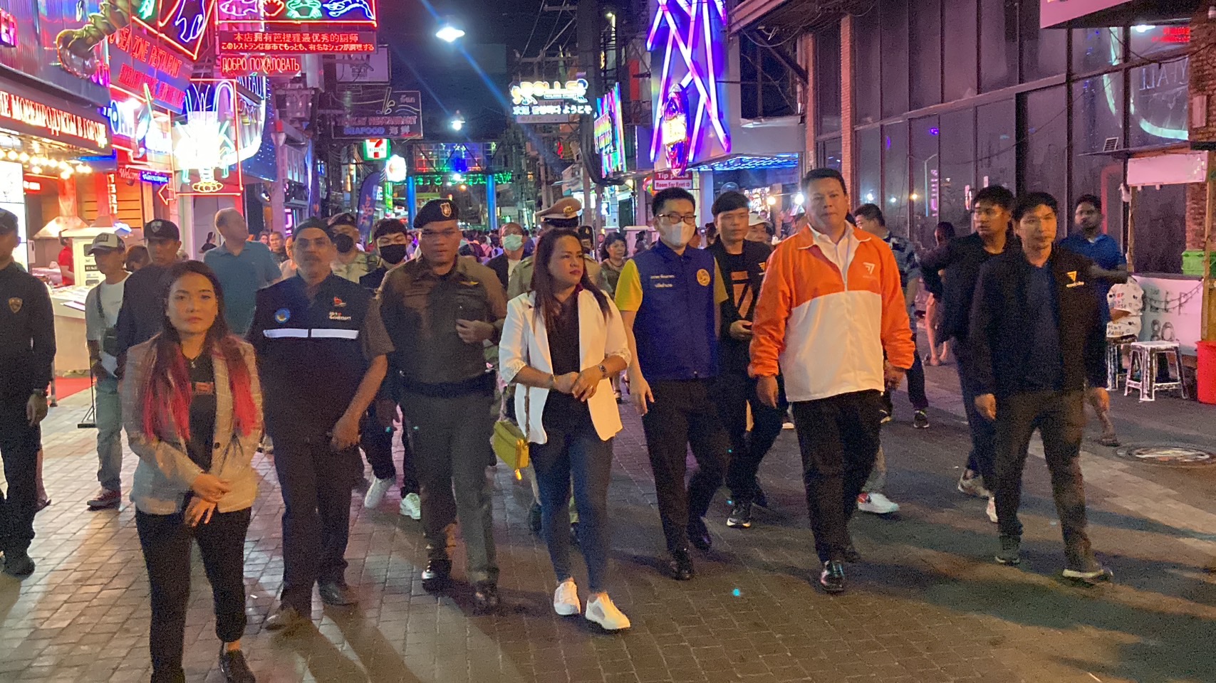 โดยร่วมกับ นายภราดร ชัยนภาพร นายพิทักษ์พงษ์ อันศ์เนตร ปลัดอำเภอบางละมุง ผู้แทน นายพิสิษฐ สิริสวัสดินุกูล นายอำเภอบางละมุง พ.ต.อ.ฐนพงศ์ โพธิ์ทิ ผกก.สภ.เมืองพัทยา นายสุขราช กาลรา ประธานชุมชนวอล์กกิ้งสตรีท นางลำพึง (ลิซ่า) แฮมิลตัน ประธานชมรมผู้ประกอบการกลางคืนพัทยา
