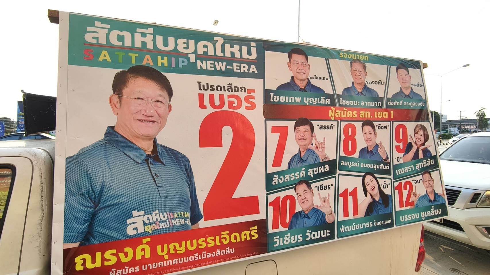 โดยทีมสัตหีบยุคใหม่ นำโดย นายณรงค์ บุญบรรเจิดศรี หรือนายกเม้ง อดีตนายกเทศมนตรีเมืองสัตหีบหลายสมัย หมายเลข 1 และผู้สมัครสมาชิกสภาเทศบาลเมืองสัตหีบ หมายเลข 7-12 ทั้ง 3 เขต