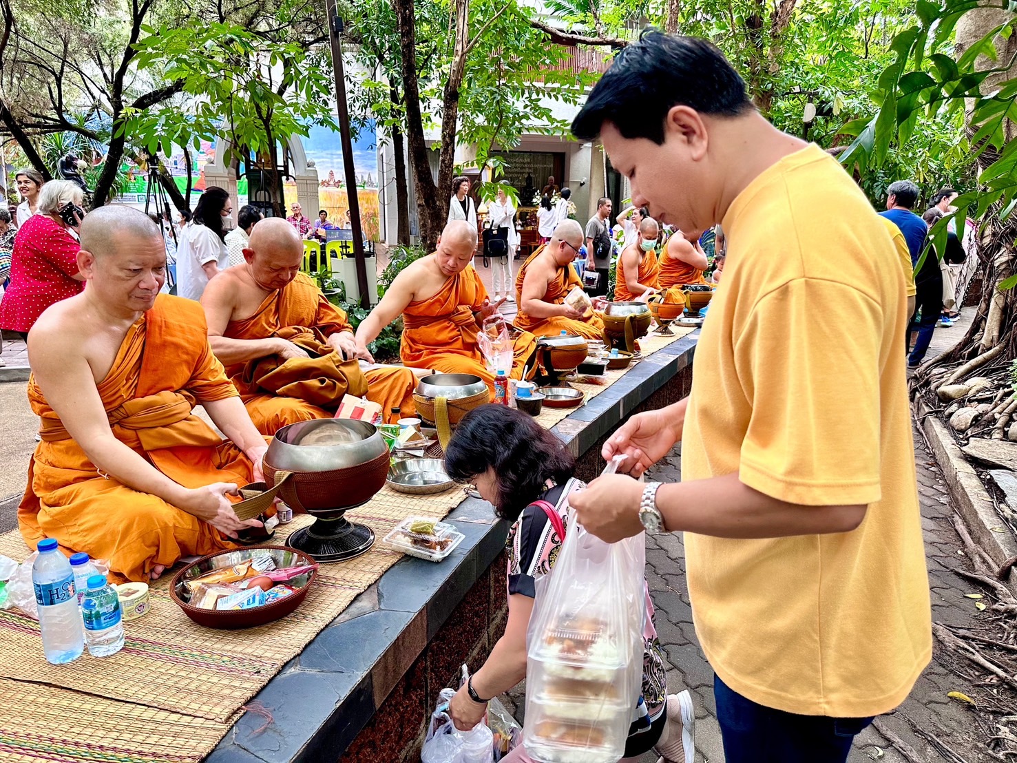 ประชาชนร่วมทำบุญเนื่องในวันวิสาขบูชา ที่วัดชลประทานรังสฤษดิ์ บรรยากาศเต็มไปด้วยความสงบและศรัทธา