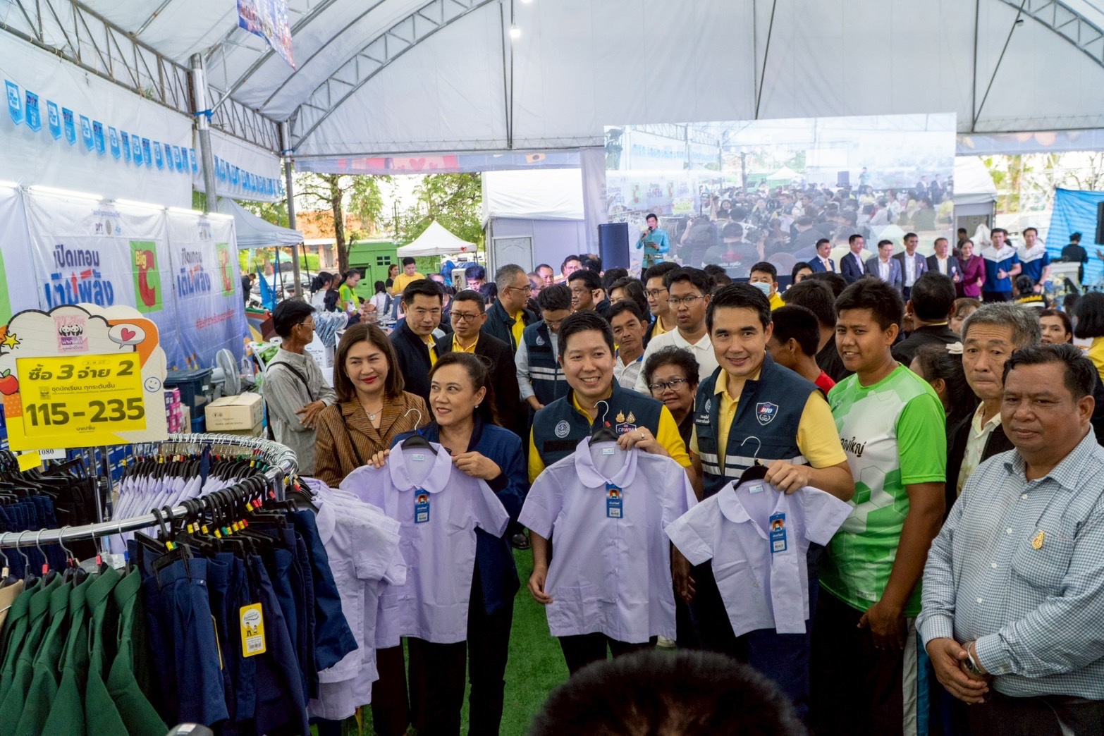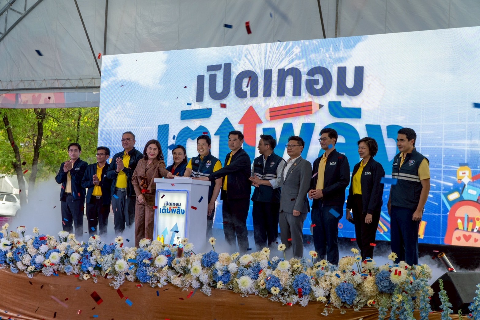 วันที่ 12 พฤษภาคม 2568 เวลา 14.00 น. ที่สนามหน้าศาลากลางจังหวัดฉะเชิงเทรา นายวรวงศ์ รามางกูร ผู้ช่วยรัฐมนตรีประจำกระทรวงพาณิชย์ เป็นประธานในพิธีเปิดงาน “มหกรรมธงฟ้าขับเคลื่อนเศรษฐกิจภูมิภาค จังหวัดฉะเชิงเทรา ภายใต้โครงการ “เปิดเทอม เติมพลัง” โดยมี นายคุณากร ปรีชาชนะชัย ที่ปรึกษารัฐมนตรีว่าการกระทรวงพาณิชย์ นายจิรวัฒน์ รัณยกานนท์ เลขานุการรัฐมนตรีว่าการกระทรวงพาณิชย์ นายวรชัย เหมะ คณะที่ปรึกษารัฐมนตรีว่าการกระทรวงพาณิชย์ คณะผู้บริหารระดับสูง กระทรวงพาณิชย์ นางฐิติมา ฉายแสง สมาชิกสภาผู้แทนราษฎรจังหวัดฉะเชิงเทรา เขต 1 นางขวัญกมล ฉายแสง นายกเทศมนตรีเมืองฉะเชิงเทรา ตลอดจนหน้าส่วนราชการ ผู้แทนหน่วยงานภาครัฐ ภาคเอกชนเข้าร่วม บรรยากาศภายในงานมีพี่น้องประชาชนมาจับจ่ายใช้สอยเลือกซื้อสินค้ากันอย่างคึกคัก