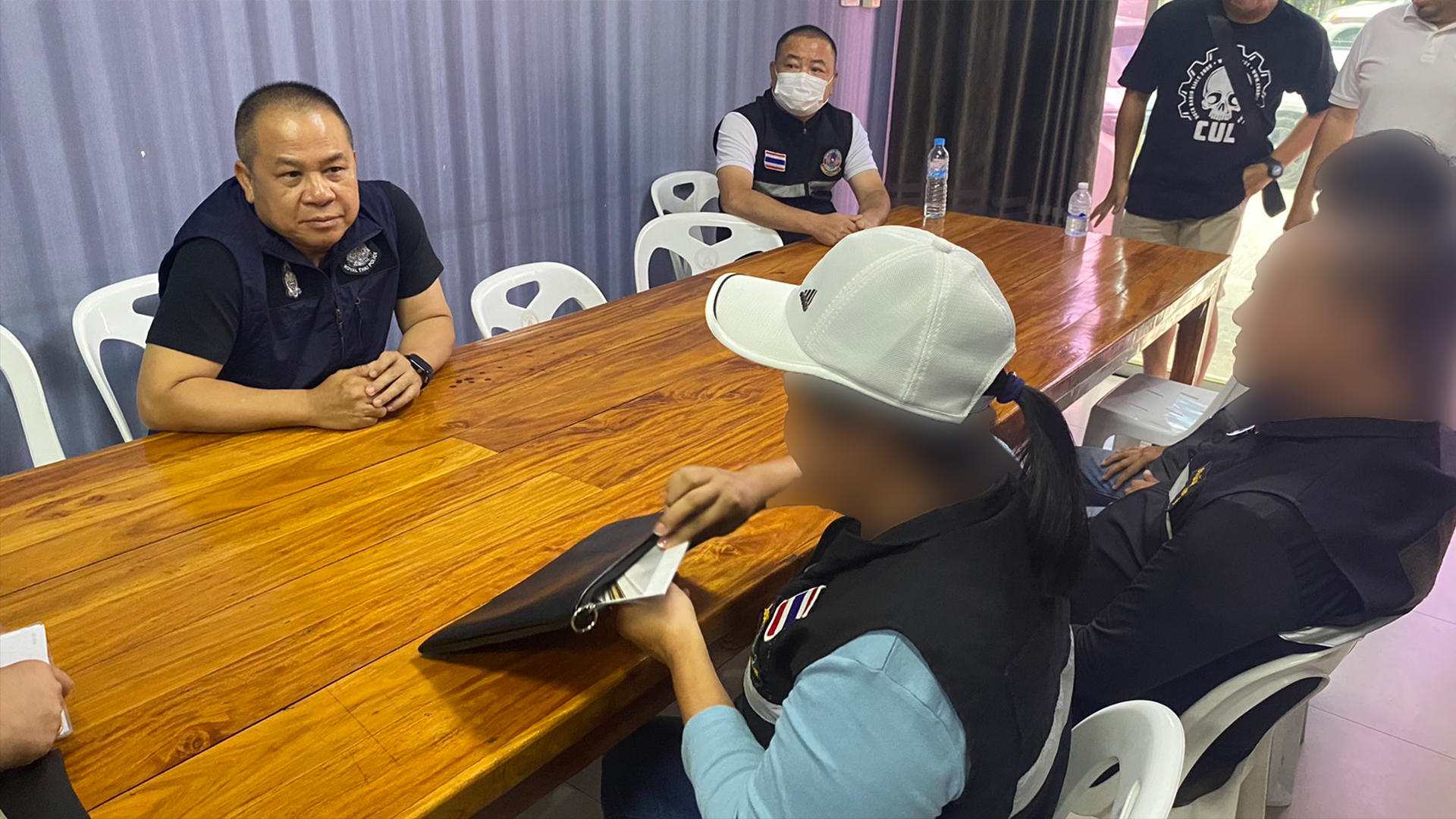 ด้าน พ.ต.อ.คมสรร คำตุ่นแก้ว ผกก.สภ.สัตหีบ หลังทราบเรื่อง ได้ประสานกับ นายอนุศักดิ์ พิริยอมร นายอำเภอสัตหีบ สนธิกำลัง ร่วมกันติดตาม ก่อนเชิญทั้งหมด รวมกัน 10 คน ทั้งหญิงและชาย และรถกระบะ จำนวน 2 คัน มาสอบถามยัง สภ.สัตหีบ ทราบว่ากลุ่มคนดังกล่าว มาจากมูลนิธิน่านร่วมใจและสาธารณกุศล เพื่อขอรับบริจาคเงินจากชาวบ้านนำเงินไปช่วยเหลือผู้ประสบภัยต่าง ๆ เด็กยากจนและเด็กกำพร้า