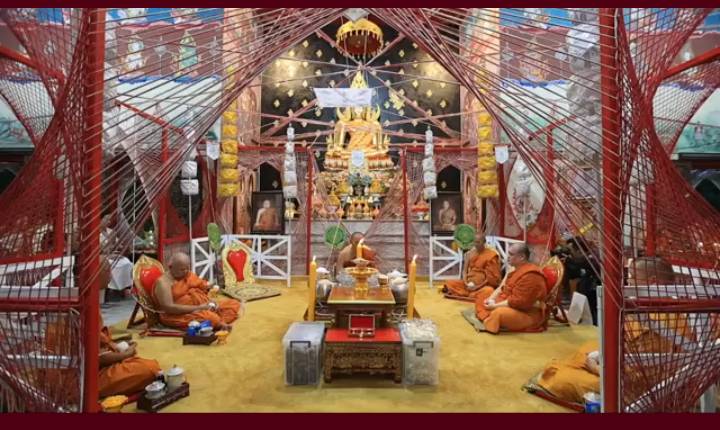 เมื่อเวลา17.00น. วันที่ 18 พฤษภาคม 2568 ที่ อุโบสถจตุรมุข วัดเขาไม้แดง ตำบลบางพระ อำเภอศรีราชา จังหวัดชลบุรี ประชาชนจำนวนมากต่างพากันมาบูชาพานครู ข้าวตอกดอกไม้และเทียนเพื่อบูชาเทพเทวดานพเคราะห์ทั้ง 9 องค์ ตามตำรับวัดเขาไม้แดง เพื่อร่วมพิธีสวดนพเคราะห์ตามตำรับโบราณรับส่งดาวตรีเทพ(ดาวราหู-ดาวพฤหัสและดาวเสาร์)และ เป่ายันต์นารายณ์พลิกแผ่นดิน กลับร้ายกลายเป็นดี โดยในเวลา17.12 เริ่มพิธีบวงสรวงเทวดานพเคราะห์ โดยพราหมณ์ และในเวลา 18 .38 น. เริ่มสวดนพเคราะห์ และในเวลา 20.19น. ทำพิธีเป่ายันต์นารายณ์พลิกแผ่นดินโดยหลวงพ่อสง่า เพื่อเสริมดวง เสริมบารมี เปิดทางชีวิตดีพลิกดวงจากร้ายเป็นดี เพื่อส่งราหู เพื่อปัดเป่าสิ่งไม่ดีและรับราหูประจำราศีเข้ามาประจำราศี ตามความเชื่อของชาวบ้านที่มีความเชื่อเรื่องราหู