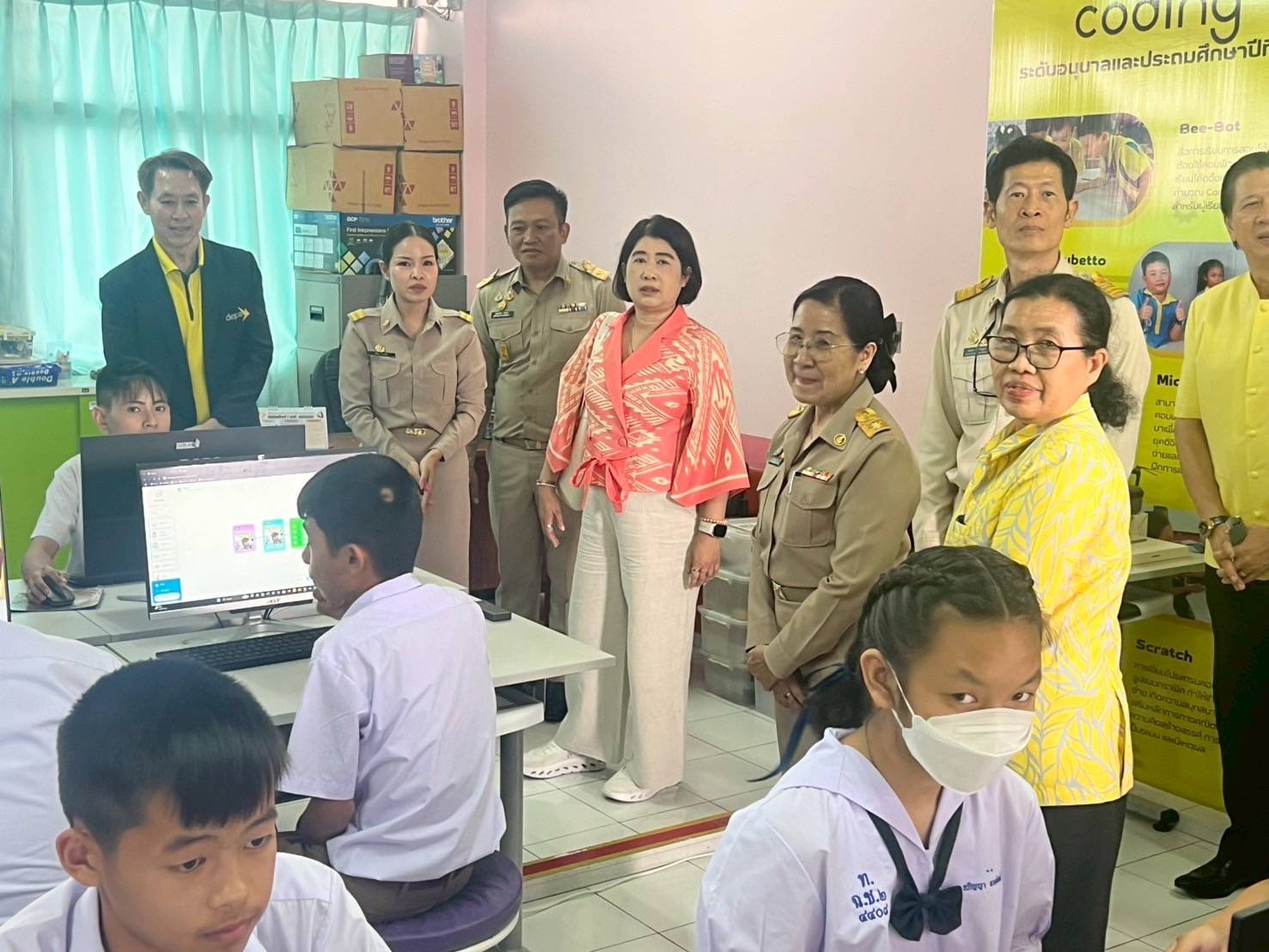 นางสาวชมภารี ชมภูรัตน์ หัวหน้าผู้ตรวจราชการกระทรวงดิจิทัลเพื่อเศรษฐกิจและสังคม พร้อมคณะ ลงพื้นที่ตรวจราชการ ติดตามโครงการ Coding for better Life by depa เพื่อติดตามผลการดำเนินงาน ด้านการพัฒนาทักษะดิจิทัลและการใช้เทคโนโลยีในสถานศึกษา