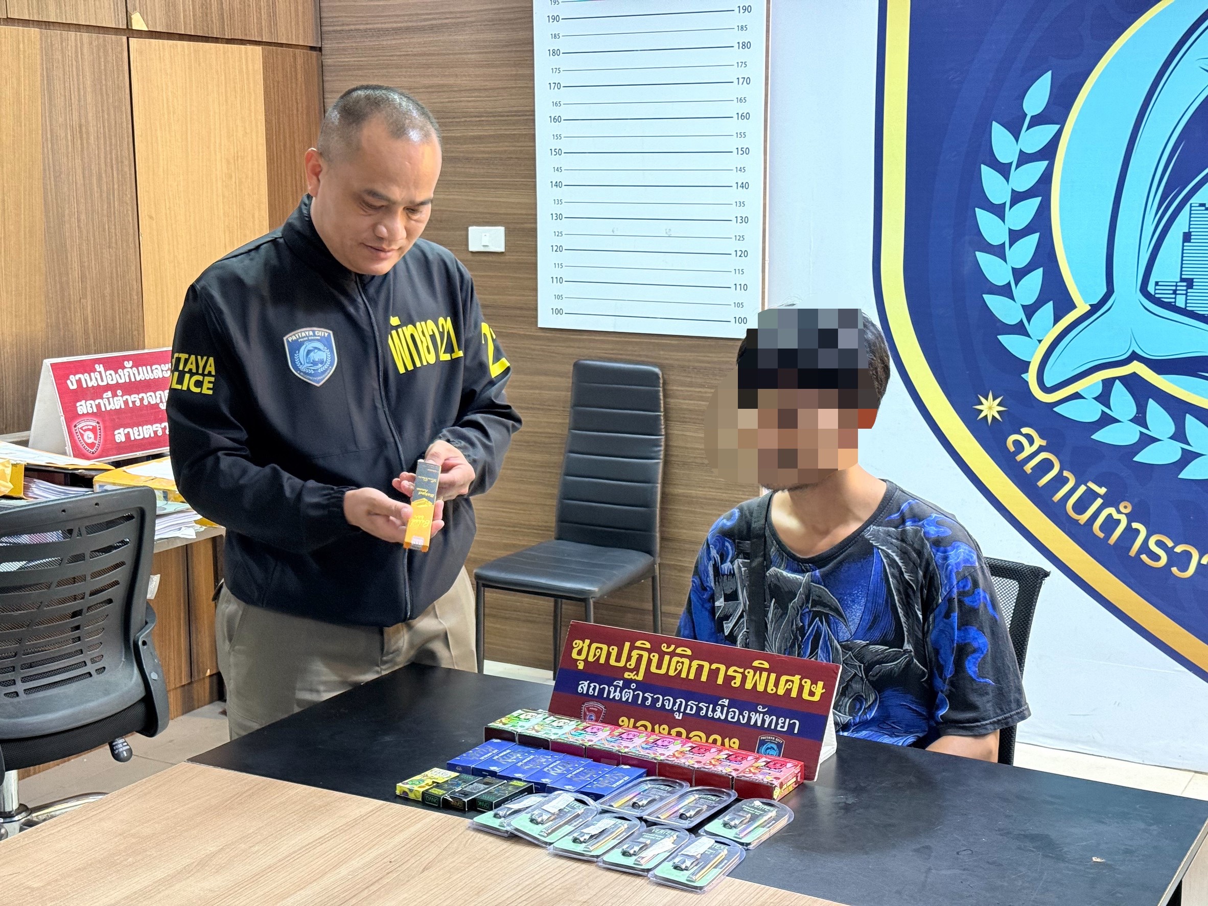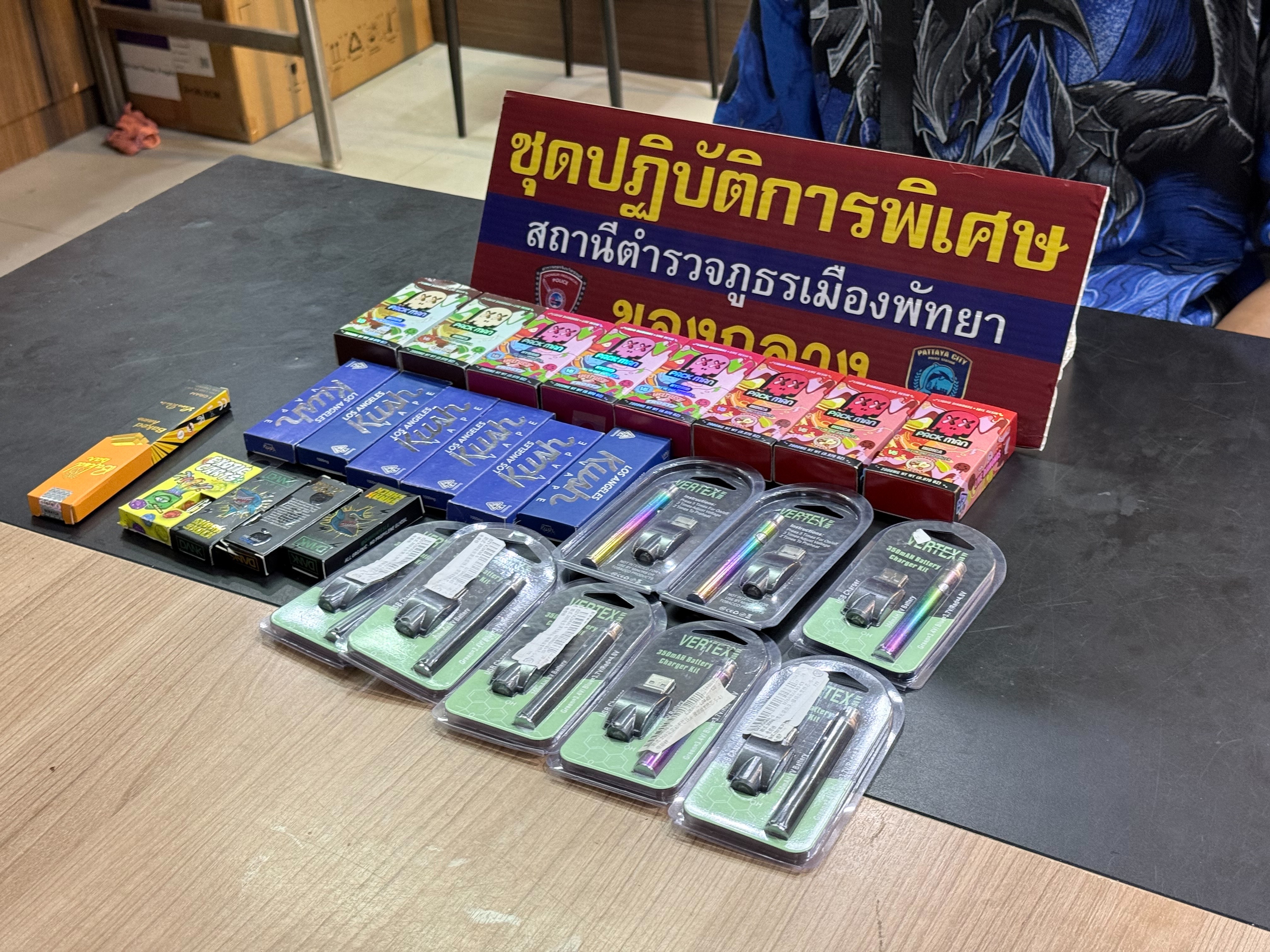 เบื้องต้น ได้แจ้งข้อหา ช่วยซ่อนเร้น ช่วยจำหน่าย ช่วยพาเอาไปเสีย ซื้อ รับจำนำหรือรับไว้โดยประการใดซึ่งของอันตนพึงรู้ว่าเป็นของที่เข้ามาในราชอาณาจักรโดยยังมิได้ผ่านพิธีการศุลกากรโดยถูกต้อง (ตาม พรบ.ศุลกากร พ.ศ.๒๕๖๐ มาตรา ๒๔๖) และขายสินค้าที่คณะกรรมการคุ้มครองผู้บริโภคสั่งห้ามขาย (บุหรี่ไฟฟ้า) พร้อมควบคุมตัวส่งพนักงานสอบสวน สภ.เมืองพัทยา ดำเนินการตามกฎหมายต่อไป