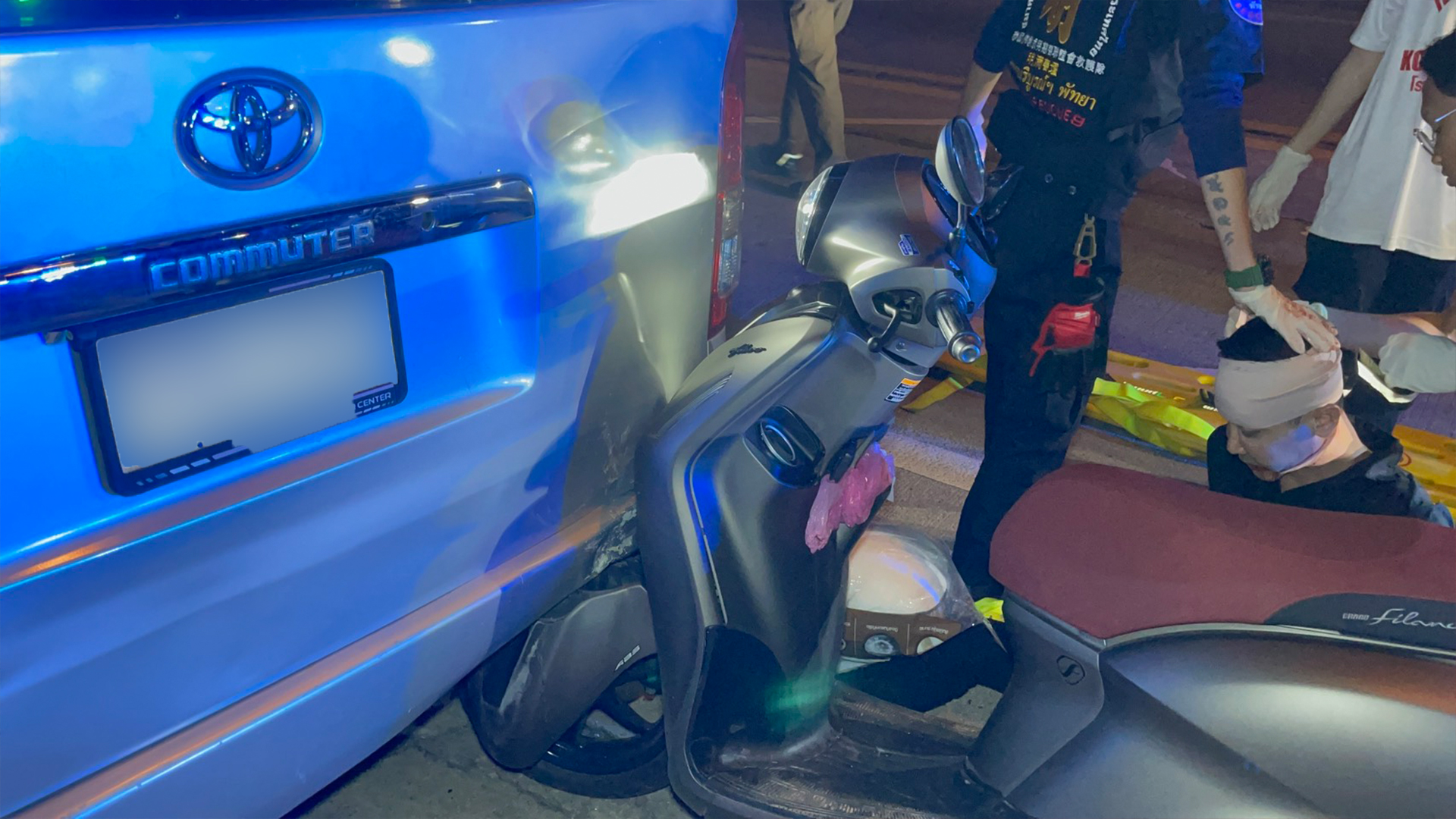 เมื่อเวลา 03.20 น.วันที่ 20 พฤษภาคม 2568 ศูนย์วิทยุสว่างบริบูรณ์เมืองพัทยาได้รับแจ้งเหตุ จยย. ชนท้ายรถตู้จอดข้างทาง เหตุเกิดภายในซอยสยามคันทรีคลับ ต.หนองปรือ อ.บางละมุง จ.ชลบุรี หลังรับแจ้งพร้อมกำลังเจ้าหน้าที่ตำรวจสภ.บางละมุง จ.ชลบุรี เดินทางไปตรวจสอบ