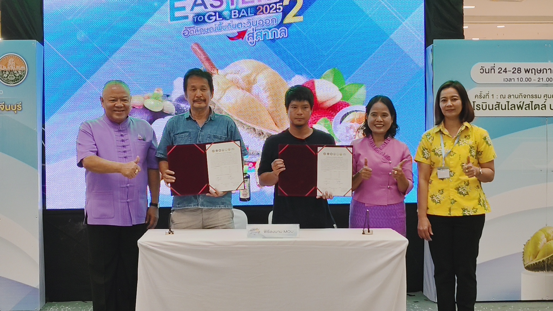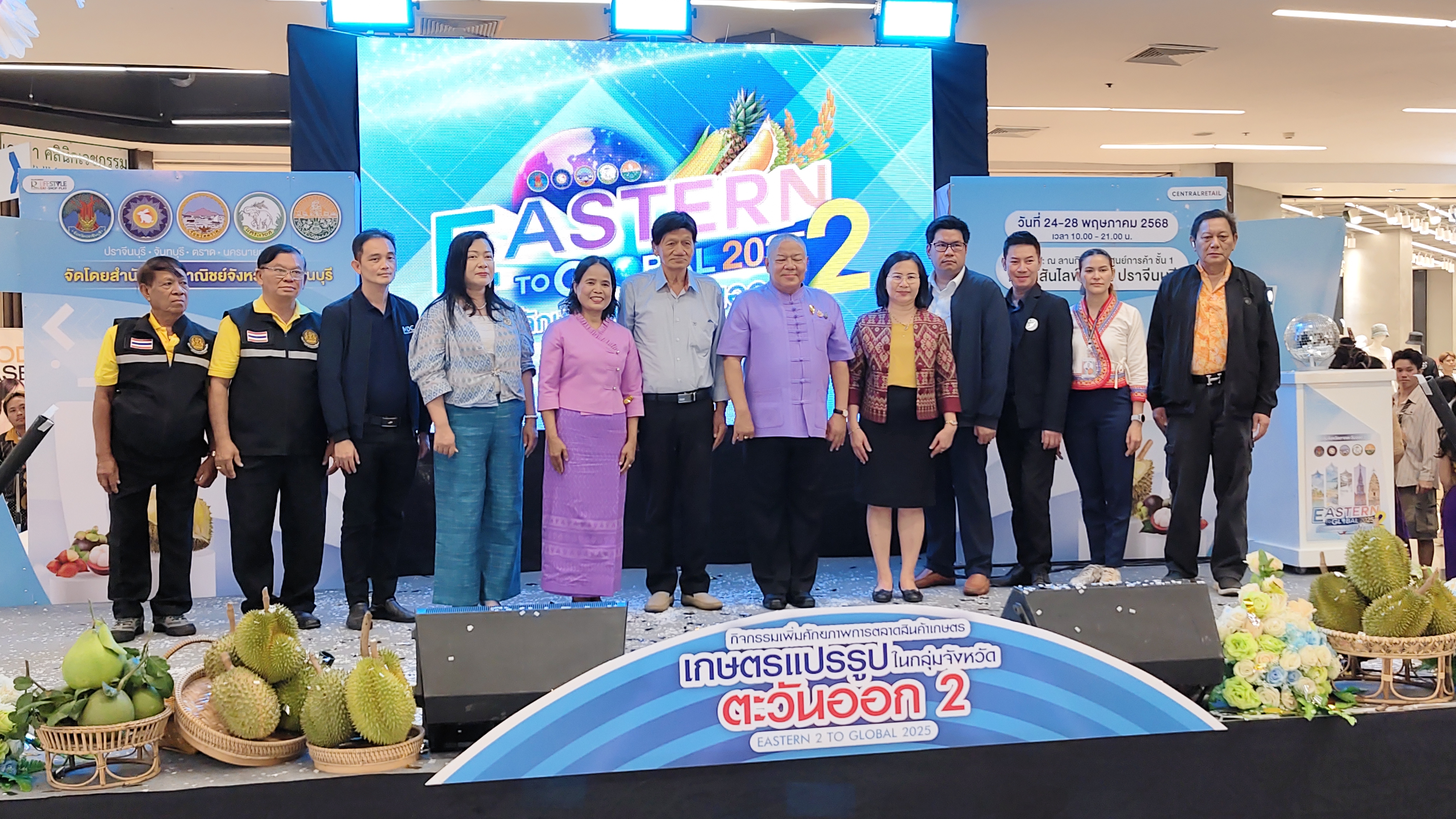 วันที่ 24 พ.ค.68 ณ ลานกิจกรรมชั้น 1 ศูนย์การค้าโรบินสันไลฟ์สไตล์ปราจีนบุรี จังหวัดปราจีนบุรี นายวีระพันธ์ ดีอ่อน ผู้ว่าราชการจังหวัดปราจีนบุรี ได้เป็นประธานในพิธีเปิดงาน ” งานแสดงและจำหน่ายสินค้า ” Eastern 2 TO CLORAL 2025 อัตลักษณ์พื้นถิ่นตะวันออก 2 สู่สากล ” โดยสำนักงานพาณิชย์จังหวัดปราจีนบุรี เปิดตัวงานแสดงและจำหน่ายสินค้า “Eastern 2 TO GLOBAL 2025 อัตลักษณ์พื้นถิ่นตะวันออก 2 สู่สากล ” ภายโครงการเพิ่มศักยภาพภาคการเกษตรในกลุ่มจังหวัดภาคตะวันออก 2 (จังหวัดปราจีน จันทบุรี ตราด นครนายก และสระแก้ว) กิจกรรมเพิ่มศักยภาพการตลาดสินค้าเกษตร เกษตรแปรรูปภาคตะวันออก 2 ปีงบประมาณ พ.ศ. 2568 ในฐานะจังหวัดที่เป็นศูนย์ปฏิบัติการกลุ่มจังหวัดภาคตะวันออก 2 พร้อมด้วยหน่วยงานภาครัฐ ภาคเอกชน และประชาชนผู้สนใจเข้าร่วมงาน