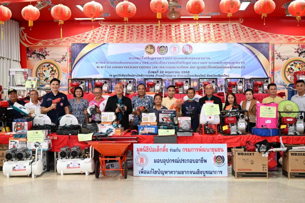 วันนี้ (วันพุธที่ 28 พฤษภาคม พ.ศ. 2568) มูลนิธิป่อเต็กตึ๊ง นำโดย นายสุรพงษ์ เตชะหรูวิจิตร กรรมการและรองเลขาธิการ เป็นประธานในพิธี พร้อมด้วย นายวิรุฬ เตชะไพบูลย์ ที่ปรึกษาประธานกรรมการ นางศิริพร กระจ่างหล้า ผู้จัดการฝ่ายสังคมสงเคราะห์ นางสาวศุภรัตน์ สมบัติเจริญไทย หัวหน้าแผนกส่งเสริมการศึกษาและอาชีพ และนางสาวเนาวรัตน์ วรรณศิริ หัวหน้าแผนกหน่วยแพทย์สงเคราะห์ชุมชน นำทีมลงพื้นที่มอบวัสดุอุปกรณ์ประกอบอาชีพให้แก่ผู้ประสบอุทกภัยยากไร้จังหวัดเชียงใหม่ จำนวน 32 ครัวเรือน คิดเป็นมูลค่าทั้งสิ้น 804,530 บาท เพื่อให้สามารถประกอบอาชีพเลี้ยงตนเองและครอบครัว ลดปัญหาความเหลื่อมล้ำในสังคม สร้างความสุขสู่ชุมชน สังคม และประเทศชาติอย่างยั่งยืน โดยมี นายวีรพงศ์ ฤทธิ์รอด รองผู้ว่าราชการจังหวัดเชียงใหม่ และนายวรงค์ แสงเมือง รองอธิบดีกรมการพัฒนาชุมชน เป็นประธานร่วมในพิธี และคณะมูลนิธิเชียงใหม่สามัคคีการกุศล จังหวัดเชียงใหม่ เป็นผู้ประสานงานและร่วมในพิธี พร้อมด้วย อาสาสมัครศิลปินมูลนิธิป่อเต็กตึ๊ง นำโดย นายนพดล ทรงแสง (จิ้ม ชวนชื่น) และนายสวิช เพชรวิเศษศิริ (บี๋) ร่วมในพิธี นอกจากนี้ มูลนิธิฯ ยังได้มอบรถเข็นวีลแชร์ แก่ผู้พิการที่ได้รับผลกระทบจากอุทกภัยในพื้นที่ 8 อำเภอ ได้แก่ ฝาง แม่วาง สันทราย ดอยเต่า หางดง สันป่าตอง เวียงแหง แม่อาย รวมจำนวน 14 คัน และมอบรถจักรยานแก่โรงเรียนชนบทที่ขาดแคลน จำนวน 2 โรงเรียน รวมจำนวน 20 คัน เพื่อให้นักเรียนที่ประสบปัญหาในการเดินทางได้ยืมเรียน รวมถึงเป็นการแบ่งเบาภาระค่าพาหนะแก่ผู้ปกครองได้อีกทางหนึ่ง อีกทั้งยังเสริมสร้างให้นักเรียนได้ออกกำลังกาย เรียนรู้กฎจราจร เรียนรู้การแบ่งปัน และดูแลรักษาสาธารณสมบัติร่วมกัน รวมมูลค่าการดำเนินการช่วยเหลือชาวเชียงใหม่ในครั้งนี้ทั้งสิ้น 876,130 บาท (แปดแสนเจ็ดหมื่นหกพันหนึ่งร้อยสามสิบบาทถ้วน) โดยมีประชาชน เยาวชน และผู้แทนจากสถาบันการศึกษา เป็นผู้รับมอบ อีกทั้ง มูลนิธิฯ ยังได้จัดหน่วยแพทย์สงเคราะห์ชุมชน นำทีมแพทย์อาสาฯ เจ้าหน้าที่หน่วยแพทย์ ทีมบรรเทาสาธารณภัย (กู้ชีพ) และอาสาสมัครลงพื้นที่ให้บริการประชาชนฟรี ประกอบด้วย บริการตรวจรักษาโรคทั่วไป จ่ายยา ทันตกรรม คัดกรองเบาหวาน กิจกรรมนันทนาการ ตรวจวัดสายตาพร้อมแจกแว่น บริการตัดผม ฯลฯ ณ มูลนิธิเชียงใหม่สามัคคีการกุศล อำเภอเมือง จังหวัดเชียงใหม่