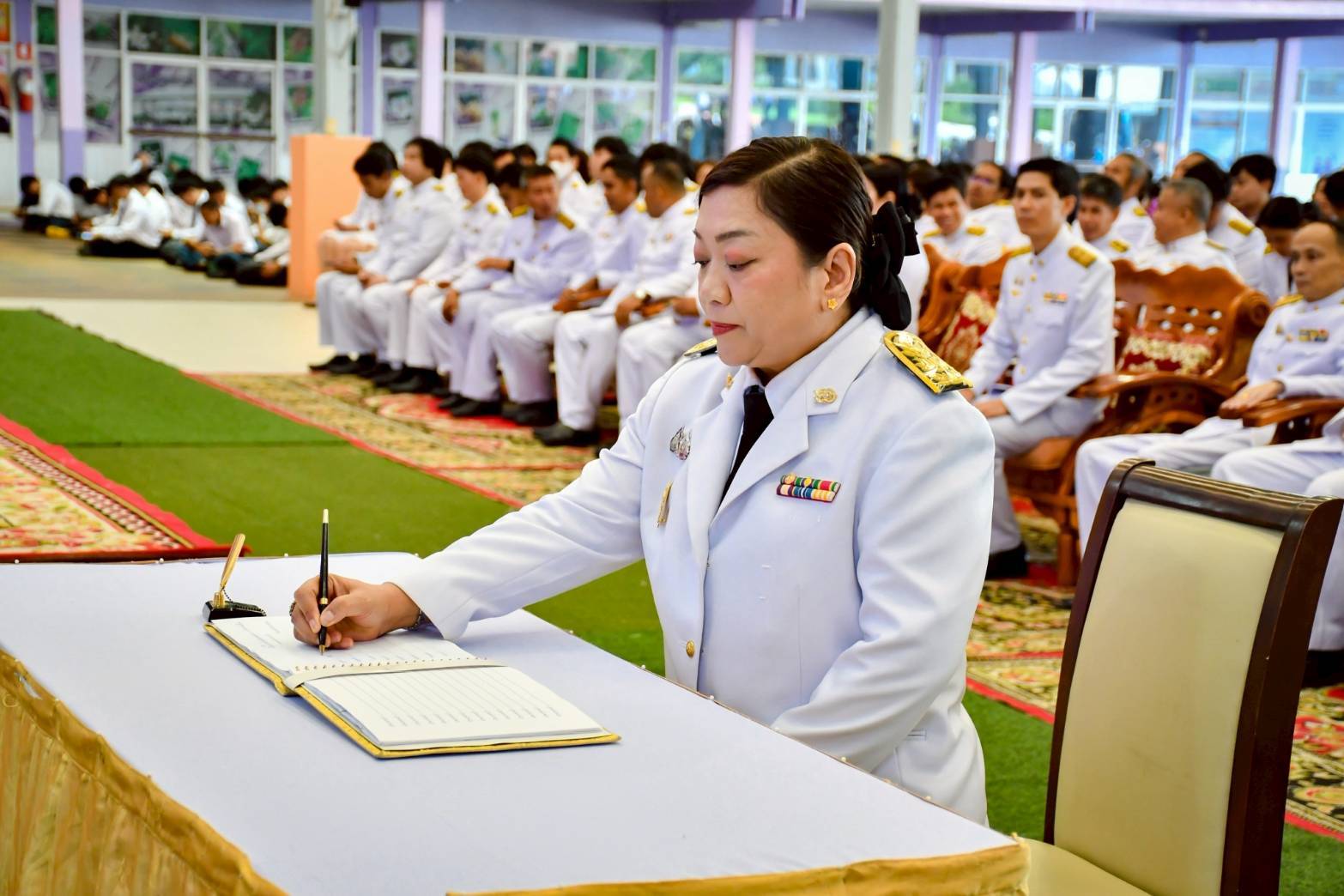 ต่อมา ประธานในพิธีได้อ่านคำถวายราชสดุดี พร้อมกับร่วมกันร้องเพลงสรรเสริญพระบารมี หลังจากนั้นได้ร่วมลงนามถวายพระพรตามลำดับ ดร.อารีย์ เลิศกิจเจริญผล ผู้อำนวยการวิทยาลัยเทคนิคปราจีนบุรี กล่าวถึงการจัดพิธีถวายเครื่องราชสักการะ และวางพานพุ่ม เนื่องในโอกาสวันเฉลิมพระชนมพรรษา สมเด็จพระนางเจ้าสุทิดา พัชรสุธาพิมลลักษณ พระบรมราชินี ในวันนี้เพื่อเป็นแสดงออกถึงความจงรักภักดีต่อสถาบันชาติ ศาสนา พระมหากษัตริย์ ซึ่งเป็นสถาบันที่อยู่คู่ประเทศไทยมายาวนาน อีกทั้งยังเป็นการส่งเสริมให้นักเรียน นักศึกษาได้มีส่วนร่วมในการแสดงออก และสำนึกในพระมหากรุณาธิคุณของสมเด็จพระนางเจ้าสุทิดา พัชรสุธาพิมลลักษณ พระบรมราชินี ที่มีต่อประเทศชาติต่อไป