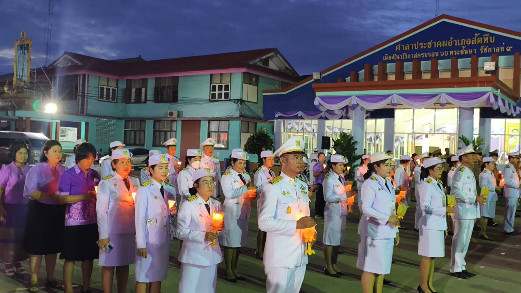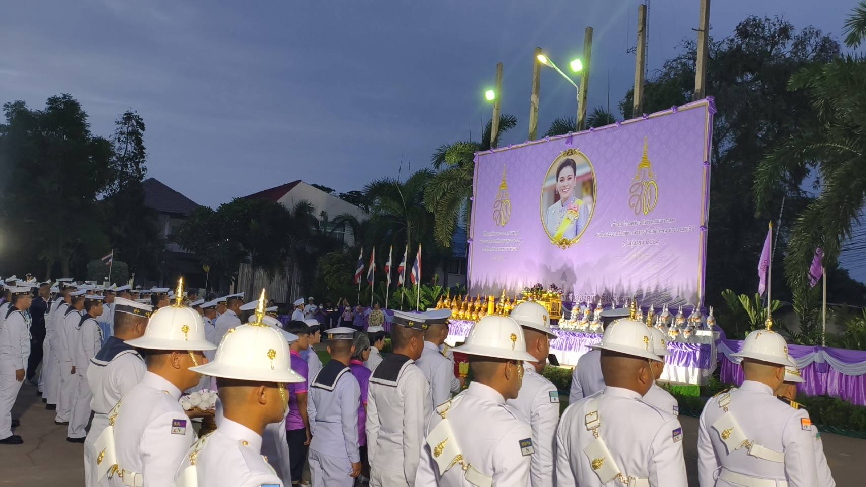 ต่อมาในช่วงค่ำ เวลา 19.19 น. มีพิธีจุดเทียนถวายพระพรชัยมงคล โดย นายอนุศักดิ์ พิริยอมร นายอำเภอสัตหีบ เป็นผู้กล่าวราชสดุดีเฉลิมพระเกียรติ และนำกล่าวคำถวายพระพรชัยมงคล พร้อมนำประชาชนร่วมจุดเทียนแสดงความจงรักภักดีและถวายพระพรแด่ สมเด็จพระนางเจ้าฯ พระบรมราชินี ท่ามกลางบรรยากาศอันเปี่ยมไปด้วยความปลื้มปิติและความสมัครสมานสามัคคีของประชาชน