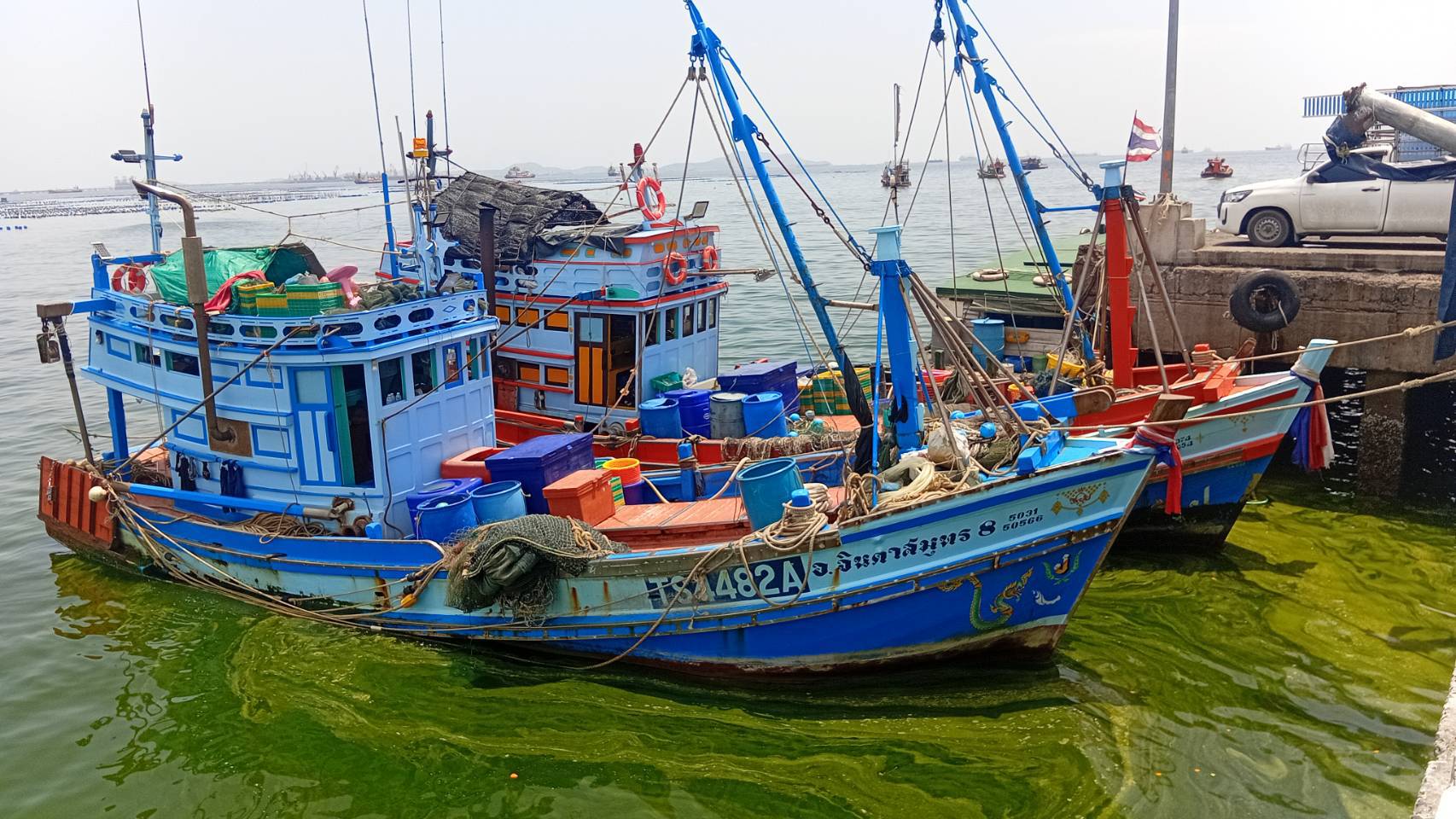 ทำให้ชาวประมงต้องหยุดออกหาปลาชั่วคราวนั้น คลื่นที่มีความแรงบวกกับสภาพอากาศที่แปรปรวนอาจทำให้พืชหรือแพลงก์ตอนใต้น้ำที่เสียอาจถูกคลื่นซัดขึ้นมา จึงทำให้เกิดปรากฏการณ์ “แพลงก์ตอนบลูม” ทำให้น้ำทะเลเปลี่ยนเป็นสีเขียวเข้ม แต่หลังจากคลื่นลมสงบแล้วประมาณ 5-6 วัน น้ำทะเลที่เป็นสีเขียวและมีกลิ่นก็จะกลับมาเหมือนเดิม แต่อย่างไรก็ตาม การเกิดแพลงก์ตอนบลูมในครั้งนี้ ไม่ส่งผลต่อการท่องเที่ยว ซึ่งนักท่องเที่ยวก็สามารถมาเที่ยวที่เกาะลอยศรีราชา ได้ตามปกติ