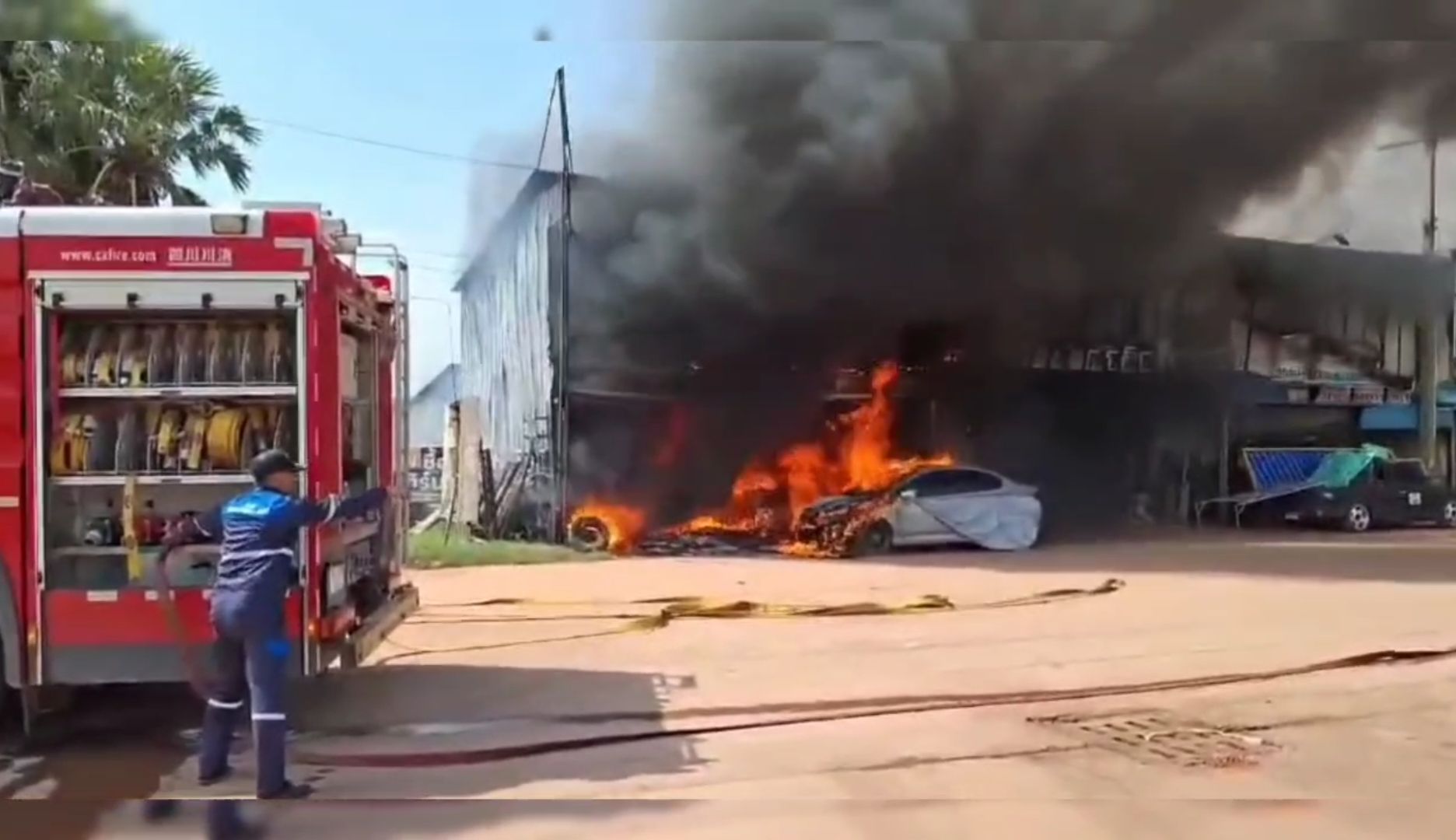 เพลิงไหม้ร้านเครื่องเสียง ทั้งร้านทั้งรถเก๋งวอด
