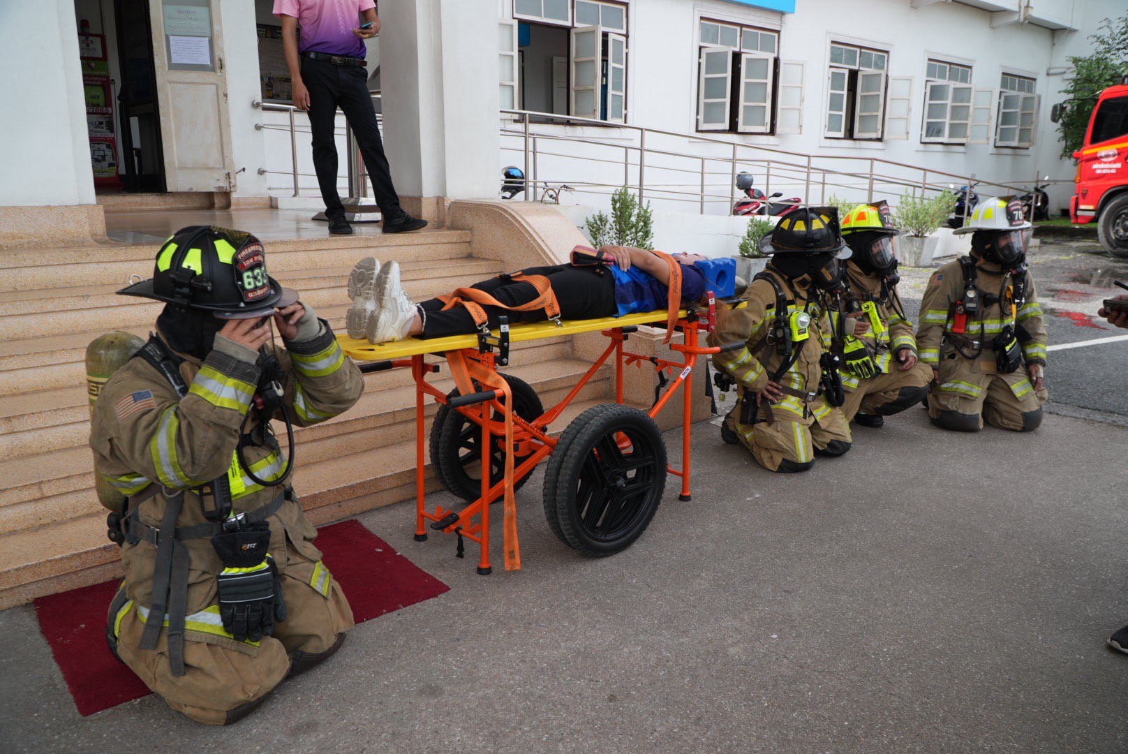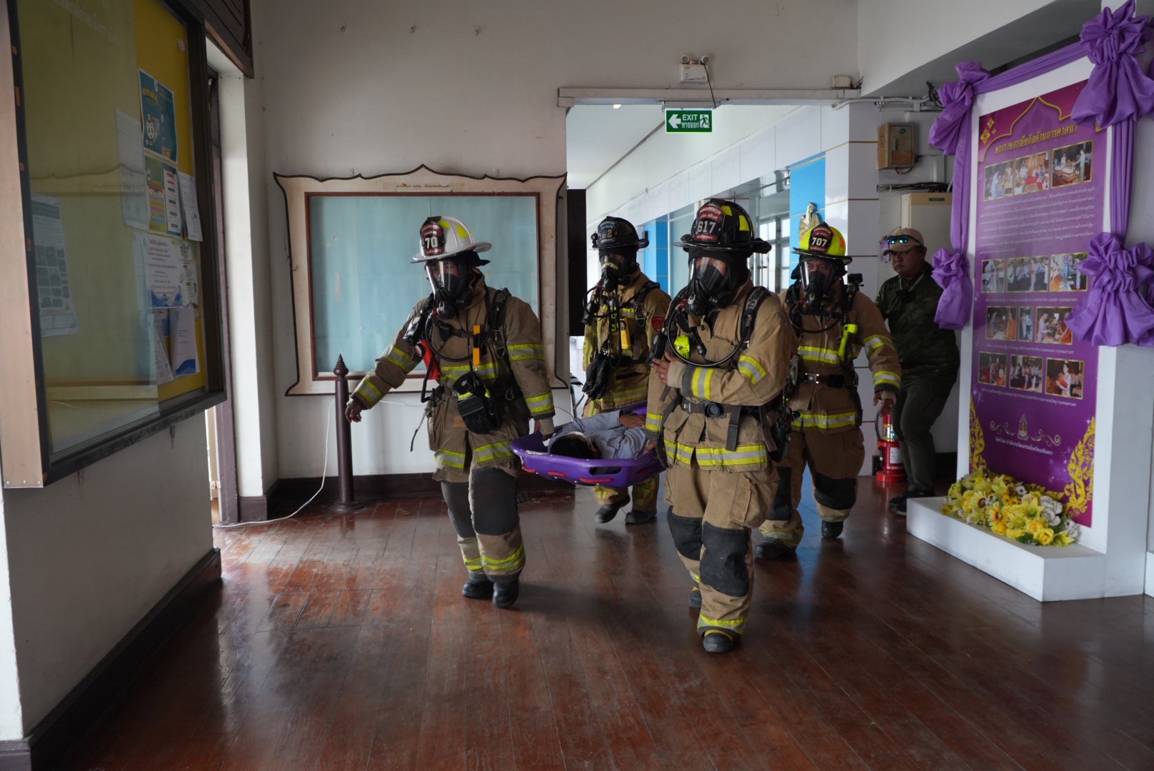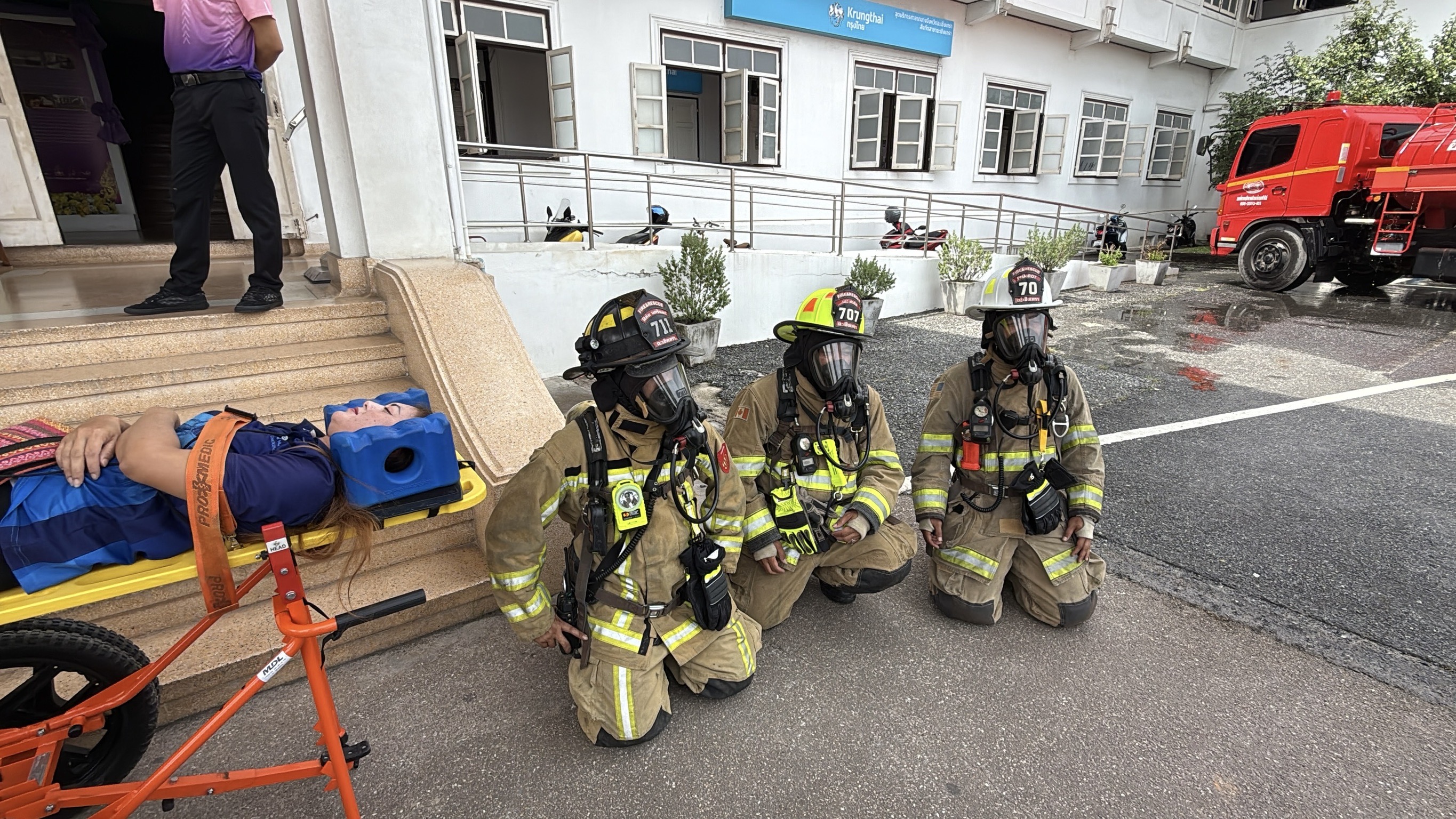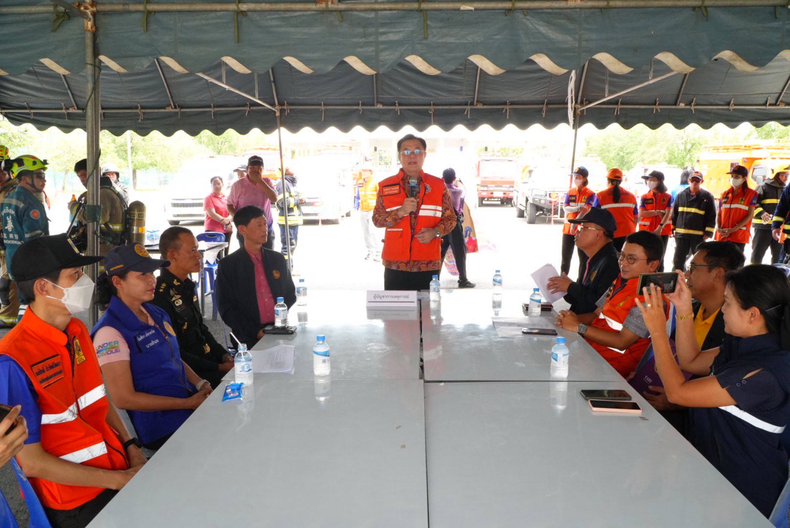 ผู้ว่าราชการจังหวัดฯ ได้สั่งอพยพเจ้าหน้าที่ทั้งหมดไปยังจุดรวมพลด้านหน้าศาลากลางจังหวัด และจัดตั้งศูนย์บัญชาการเหตุการณ์ โดยมีหน่วยดับเพลิงจากเทศบาลเมืองฉะเชิงเทรา , อบต.บ้านใหม่ , อบต.ท่าไข่ และ อบต.บางแก้ว เข้าระงับเหตุเพลิงไหม้ พร้อมทั้งมีทีมฉุกเฉินจากหน่วยกู้ภัยฉะเชิงเทรา , โรงพยาบาลพุทธโสธร และโรงพยาบาลเกษมราษฎร์ เข้าช่วยเหลือผู้ประสบภัย โดยพบผู้ติดค้างในอาคาร 1 ราย และมีผู้บาดเจ็บ 2 ราย ซึ่งได้ถูกนำตัวส่งโรงพยาบาลอย่างปลอดภัย ก่อนที่เพลิงจะสงบลง และมีการประกาศยกเลิกสถานการณ์ฉุกเฉินในเวลาต่อมา นับเป็นอีกหนึ่งความร่วมมือที่สะท้อนให้เห็นถึงพลังเครือข่ายในการเสริมสร้างความรู้ ความเข้าใจ และการเตรียมความพร้อมของเจ้าหน้าที่ในการรับมือกับสถานการณ์ฉุกเฉิน เพื่อความปลอดภัยของชีวิตและทรัพย์สินในสถานที่ราชการ