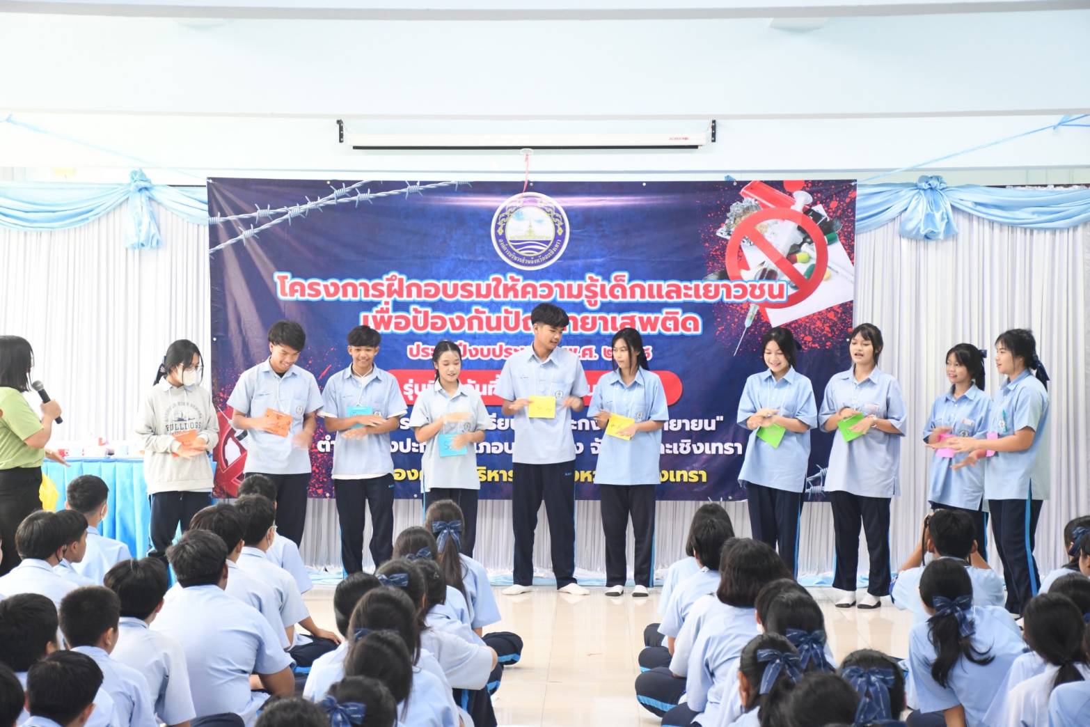 มีวัตถุประสงค์ให้เด็กและเยาวชน มีความรู้เรื่องยาเสพติด รู้จักวิธีป้องกันให้ห่างไกลจากยาเสพติดทุกชนิด และได้ความอนุเคราะห์วิทยากร จากสำนักงานป้องกันและปราบปรามยาเสพติด ภาค 2
