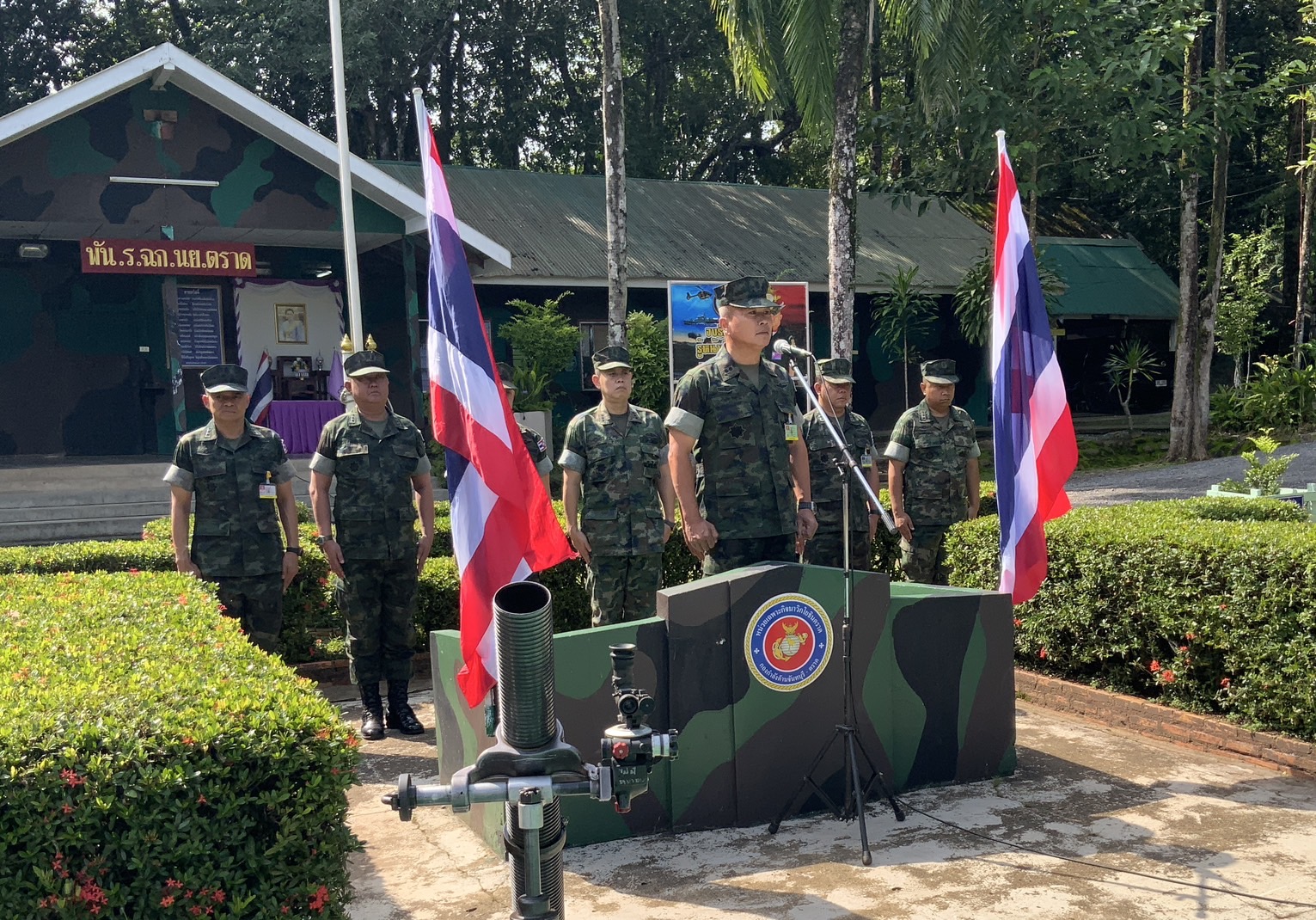 จึงขอให้พี่น้องชาวจันทบุรี และจังหวัดตราดรวมทั้งอำเภอเกาะกูด ไม่ต้องกังวลมั่นใจว่า ทุกคนจะได้รับความปลอดภัยหากมีสถานการณ์จริงเกิดขึ้น ทั้งนี้จะเห็นว่า หน่วยทหารนาวิกโยธินตราดและทุกหน่วยที่ขึ้นตรงมีความพร้อมและมีขวัญกำลังดีเยี่ยม รวมทั้งอาวุธยุทโธปกรณ์ และยุทธวิธีก็มีความพร้อม อย่างไรก็ตาม ของให้ทหารนาวิกโยธินทุกนายได้ลาดตะเวนพื้นที่ให้ต่อเนื่องเพื่อป้องกันพื้นที่อธิปไตยของไทยไว้