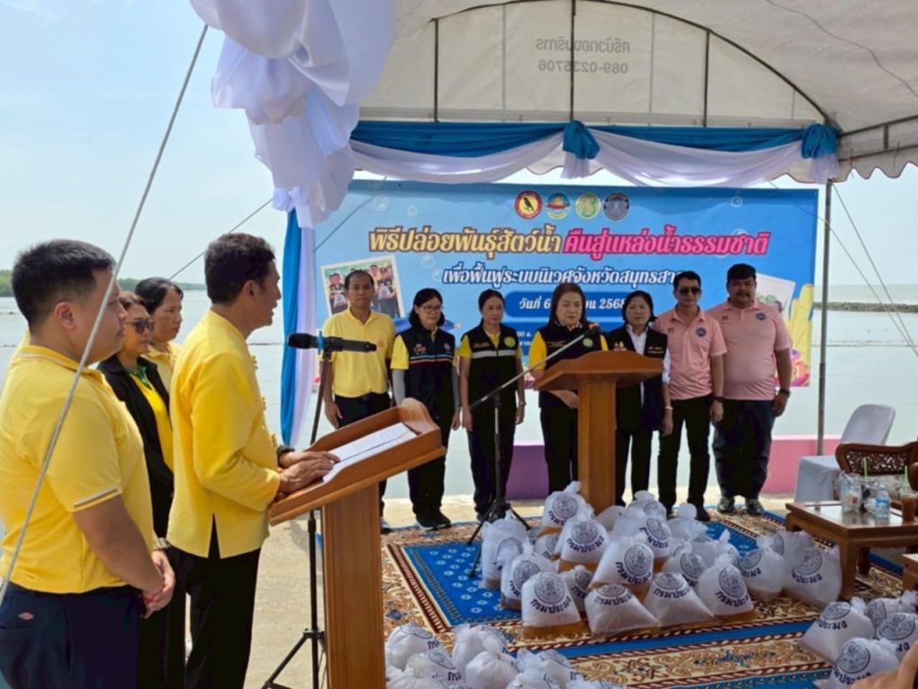 ดร.ณมาณิตา กลับบ้านเกาะ ผู้ช่วยรัฐมนตรีประจำกระทรวงเกษตรและสหกรณ์ เป็นประธานเปิดกิจกรรมปล่อยพันธุ์สัตว์น้ำคืนสู่แหล่งน้ำธรรมชาติเพื่อฟื้นฟูระบบนิเวศจังหวัดสมุทรสาคร ณ จุดชมวิวชายทะเลกาหลง หมู่ที่ 7 ตำบลกาหลง อำเภอเมืองสมุทรสาคร จังหวัดสมุทรสาคร ตามโครงการความร่วมมือระหว่างสำนักงานประมงจังหวัดสมุทรสาคร ร่วมกับองค์การบริหารส่วนตำบลกาหลง โดยมีนายวิชัย ถีระปราโมทย์ นายกองค์การบริหารส่วนตำบลกาหลง กล่าวต้อนรับ นายเผดิม รอดอินทร์ ประมงจังหวัดสมุทรสาคร กล่าวรายงานวัตถุประสงค์ในการจัดกิจกรรม พร้อมด้วยคณะผู้บริหารหน่วยงานกระทรวงเกษตรและสหกรณ์ในจังหวัดสมุทรสาคร หน่วยงานกรมประมงภายใต้ FC สมุทรสาคร สมาชิกสภาฯ หัวหน้าส่วนราชการ พนักงานส่วนตำบลกาหลง ผู้ใหญ่บ้าน อถล. และประชาชนในพื้นที่เข้าร่วมพิธีฯจำนวนมาก ร่วมกันปล่อยพันธุ์สัตว์น้ำ ณ บริเวณสะพานปลา หมู่ที่ 7 ตำบลกาหลง อำเภอเมืองสมุทรสาคร จังหวัดสมุทรสาคร