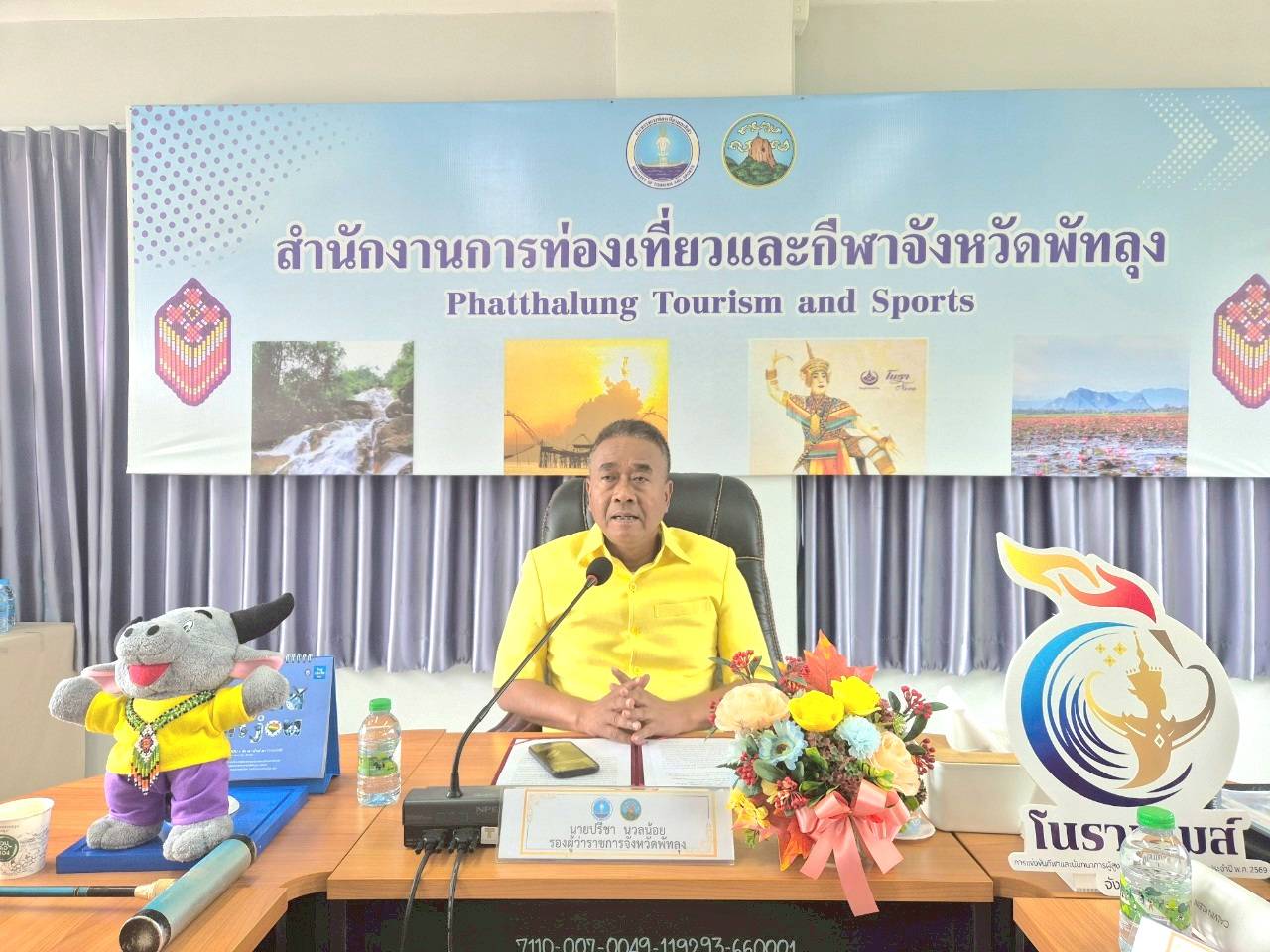 วันที่ 9 มิ.ย. 2568 ผู้สื่อข่าวรายว่าที่ห้องประชุมดอกพะยอม ชั้น 2 สำนักงานการท่องเที่ยวและกีฬาจังหวัดพัทลุง อ.เมือง จ.พัทลุง นายรัฐศาสตร์ ชิดชู ผู้ว่าราชการจังหวัดพัทลุง มอบหมายให้นายปรีชา นวลน้อย รองผู้ว่าราชการจังหวัดพัทลุง กล่าวให้โอวาทนักกีฬาและเจ้าหน้าที่ตัวแทนจังหวัดพัทลุง ในการเข้าร่วมการแข่งขันกีฬาและนันทนาการผู้สูงอายุแห่งประเทศไทย ครั้งที่ 17 ประจำปี 2568 “โคราชเกมส์” ในระหว่างวันที่ 17 – 21 มิถุนายน 2568 ณ จังหวัดนครราชสีมา