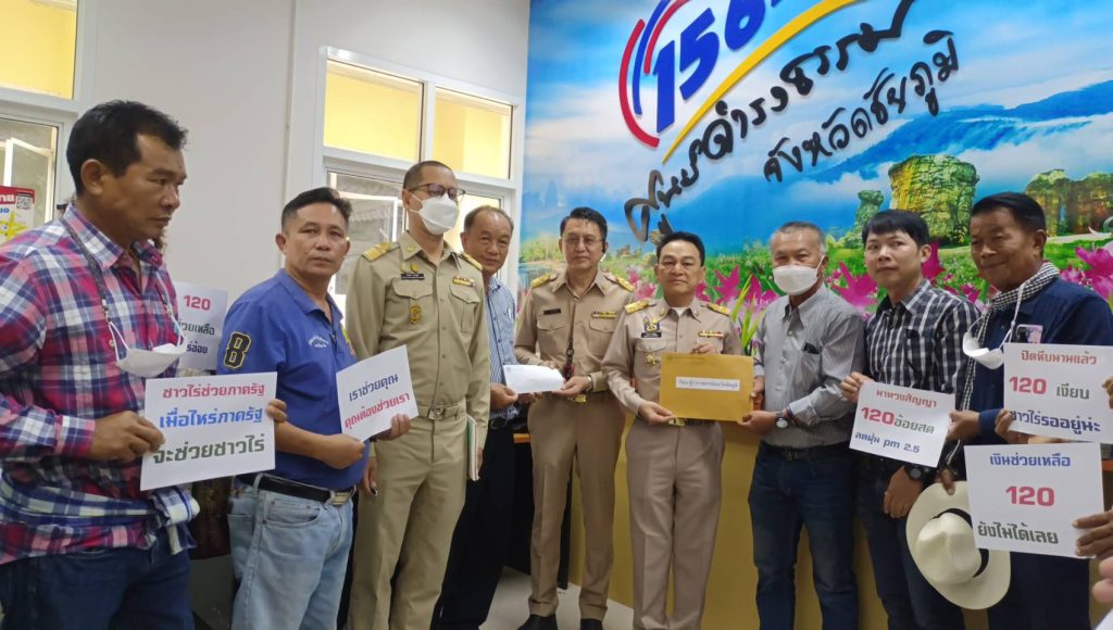 ที่ศูนย์ดำรงค์ธรรรมจังหวัดชัยภูมิ นายราชัน นามวิจิตรนายกสมาคมชาวไร่อ้อยจังหวัดชัยภูมิ และนายสมศักดิ์ ธุรารัตน์ นายกสมาคมไร่อ้อยลูกพญาและ และตัวแทนเกษตรกรกว่า50คนได้เดินทางมายื่นหนังสื่อ แก่นายพรเทพ วัชกีกุล รองผู้ว่าราชการจังหวัดชัยภูมิ พร้อมด้วยนายวีระวัฒน์ ศรีสม อุตสาหกรรมจังหวัดชัยภูมิเพื่อทวงถามเงินช่วยเหลือเกษตรกรชาวไร่อ้อยที่ตัดอ้อยสดคุณภาพดีเพื่อลดฝุ่น PM 2.5 ฤดูกาลผลิตปี2565/2566 ในราคาตันล่ะ120บาท ตามที่คณะรัฐมนตรี ในคราวประชุมเมื่อวันที่ 11 พฤษภาคม 2564 มีมติรับทราบและอนุมัติในหลักการโครงการช่วยเหลือเกษตรกรชาวไร่อ้อยเพื่อลดฝุ่น PM 2.5 โดยให้ได้รับการสนับสนุนในการช่วยเหลือจากรัฐบาล เพื่อลดต้นทุนการตัดอ้อยสดให้กับชาวไร่อ้อย 2 ฤดูการผลิต คือปีการผลิต 2564/2565 และ ปีการผลิต 2565/2566 นั้น