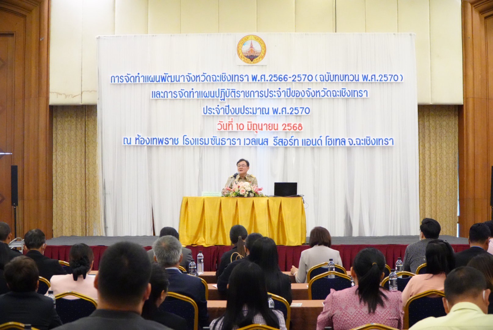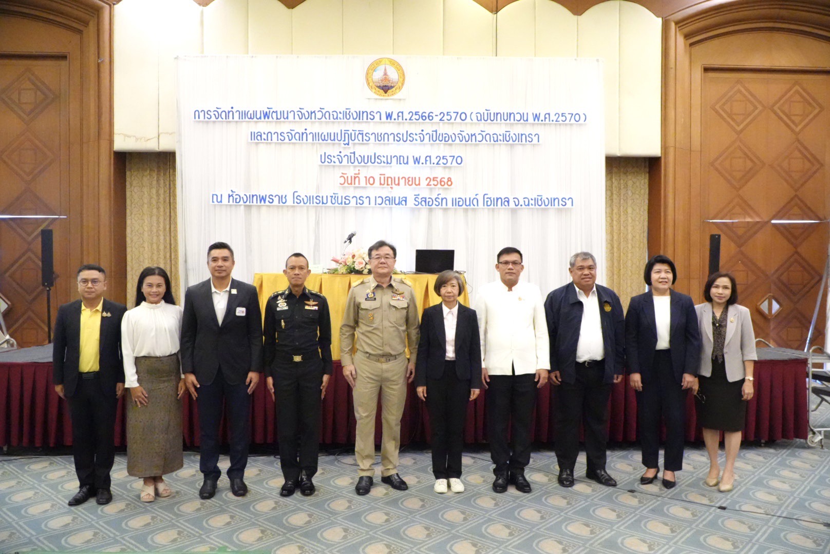 วันที่ 10 มิถุนายน 2568 เวลา 10.00 น. นายขจรเกียรติ รักพานิชมณี ผู้ว่าราชการจังหวัดฉะเชิงเทรา เป็นประธานเปิดการประชุมเชิงปฏิบัติการจัดทำแผนพัฒนาจังหวัดฉะเชิงเทรา พ.ศ.2566-2570 ฉบับทบทวน พ.ศ.2570 และแผนปฎิบัติราชการประจำปีของจังหวัดฉะเชิงเทรา ประจำปีงบประมาณ พ.ศ.2570 ณ โรงแรมซันธารา เวลเนส รีสอร์ท แอนด์ โฮเทล จังหวัดฉะเชิงเทรา พร้อมด้วยนายสาครินทร์ จำปา หัวหน้าสำนักงานจังหวัดฉะเชิงเทรา หัวหน้าส่วนราชการ หน่วนงานรัฐวิสาหกิจ นายอำเภอ ผู้บริหารองค์การปกครองส่วนท้องถิ่น ผู้แทนจากภาคเอกชน ภาคประชาสังคมในพื้นที่จังหวัดฉะเชิงเทรา และคณะกรรมการบริหารจังหวัดแบบบูณราการ (ก.บ.จ.) จังหวัดฉะเชิงเทรา เข้าร่วมจำนวนกว่า 200 คน