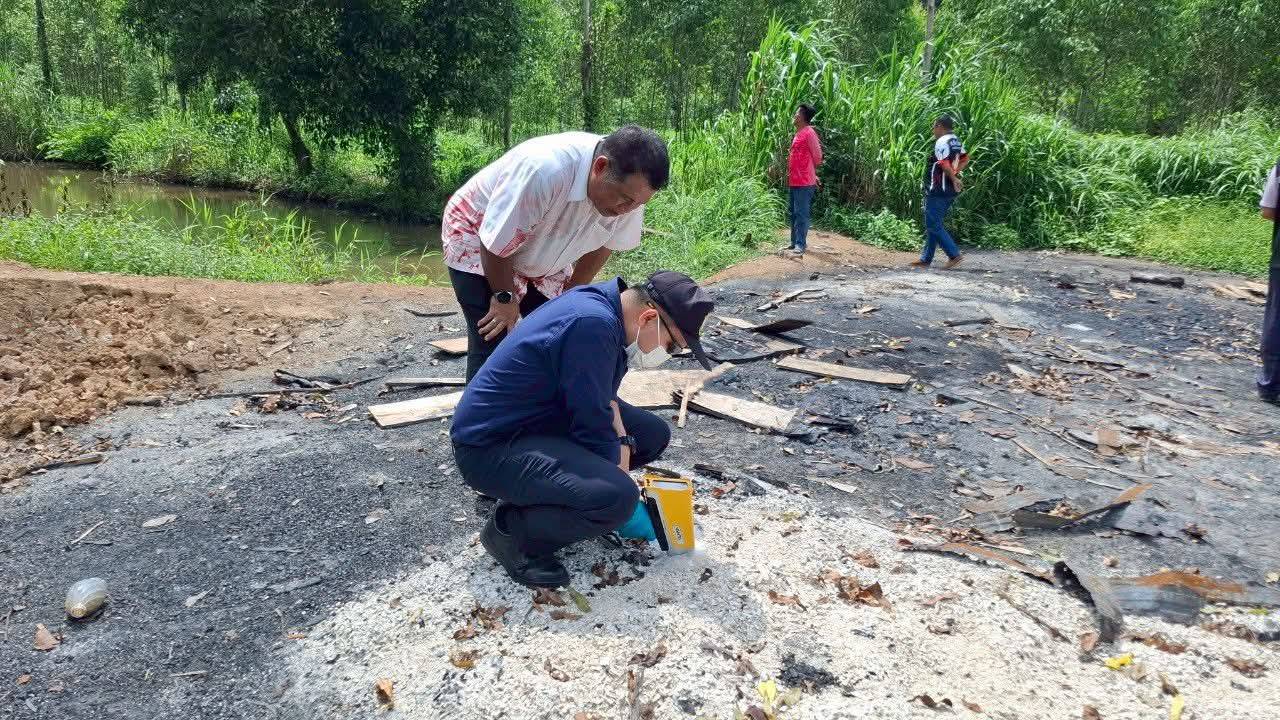1. เจ้าพนักงานสวบสวนสถานีตำรวจภูธรพนมสารคาม ได้ยึดอายัดรถยนต์กระบะที่ใช้ก่อเหตุ กองสิ่งของที่ยังไม่ได้เผา และกองสิ่งของที่เผาแล้ว เป็นที่เรียบร้อยแล้ว แต่ยังพบเศษขี้เถ้าจากการเผาหลงเหลืออยู่ในพื้นที่ โดยผู้ต้องหาให้การว่า มีการเช่าที่ดินแปลงดังกล่าวเพื่อรับเหล็กเคลือบสีมาจากโรงงานในจังหวัดสมุทรปราการ และมีการเผาลอกเอาสีที่เคลือบเหล็กออก เพื่อนำเหล็กข้างในไปขายต่อไป