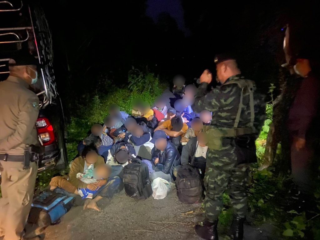 วันนี้ (12 มิ.ย.68) พล.ต.อัษฎาวุธ ปันยารชุน ผู้บัญชาการกองพลหารราบที่ 9 ในฐานะ ผู้บัญชาการกองกำลังสุรสีห์ ร่วมบูรณาการกับ นายอธิสรรค์ อินทร์ตรา ผู้ว่าราชการจังหวัดกาญจนบุรี เปิดเผยว่า ได้รับแจ้งจากแหล่งข่าวในพื้นที่ ว่าจะมีการลักลอบขนแรงงานงานต่างด้าวผิดกฎหมายเข้ามายังพื้นที่ตอนใน จึงได้สั่งการให้ พ.อ.พรรณศักย์ เพรียวพานิช ผู้บังคับการกรมทหารราบที่ 29 ในฐานะ ผู้บังคับหน่วยเฉพาะกิจลาดหญ้า กองกำลังสุรสีห์ พร้อมด้วย พันเอก ปิยะเณศร์ ภัทรศาศวัตวงษ์ รองผู้บังคับหน่วยเฉพาะกิจลาดหญ้า กองกำลังสุรสีห์ นำกำลังพลร่วมกับ พ.ต.อ.กรณ์ สมคะเณย์ ผกก.ตม.จว.กาญจนบุรี กองร้อยตำรวจตระเวนชายแดนที่ 135 สภ.ทองผาภูมิ และหน่วยงานความมั่นคงในพื้นที่ อ.ทองผาภูมิ ทำการลาดตระเวนและซุ่มเฝ้าตรวจ บริเวณ บ้านวังเกียง ต.ท่าขนุน อ.ทองผาภูมิ จว.ก.จ.