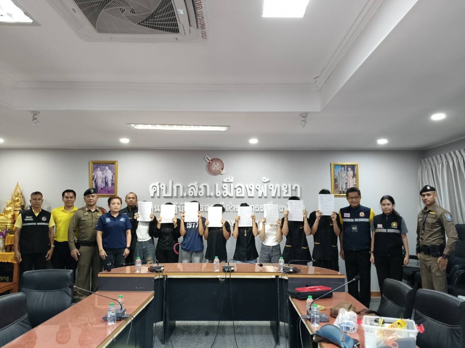 จึงนำตัวส่งพนักงานสอบสวน สภ.เมืองพัทยา ดำเนินคดี ในข้อหา เป็นคนต่างด้าวทำงานโดยไม่มีใบอนุญาตทำงาน ตามมาตรา 8 บทกำหนดโทษมาตรา 101 จำนวน 5 คน และข้อหา ไม่แจ้งให้นายทะเบียนทราบถึงผู้เป็นนายจ้าง สถานที่ทำงานของนายจ้าง และลักษณะงานหลักที่ทำ ภายใน 15 วัน นับแต่วันที่เข้าทำงาน ตามมาตรา 64/2 บทกำหนดโทษมาตรา 119/1 แห่งพระราชกำหนดเดียวกัน จำนวน 3 คน และได้ร้องทุกข์กล่าวโทษผู้เป็นนายจ้างของคนต่างด้าวต่อพนักงานสอบสวน เพื่อให้ติดตามตัวมารับทราบข้อกล่าวหา และดำเนินคดีตามกฎหมายต่อไป